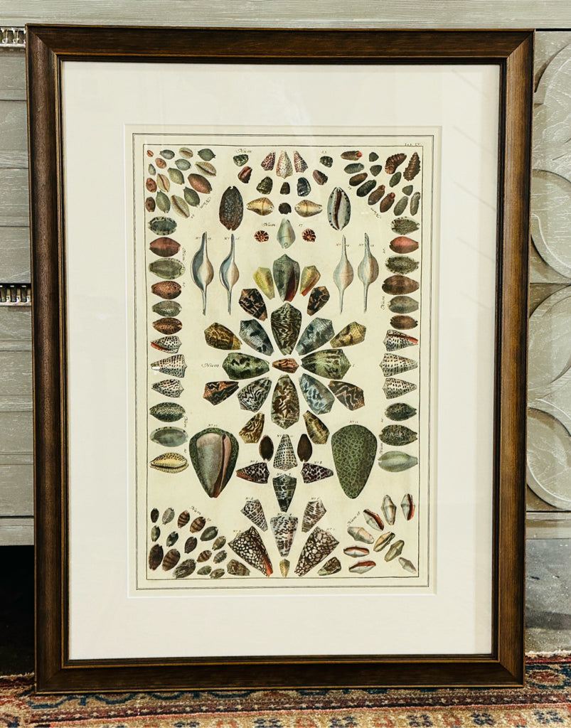 Albertus Seba 'Shells IV' print, 20"W x 24.5"H x 1"D