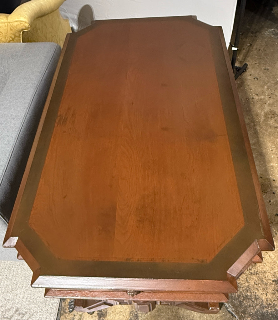 Antique Desk, c. 1870s, walnut, cameos/carving, 48.5"L x 26.5"W x 30"H
