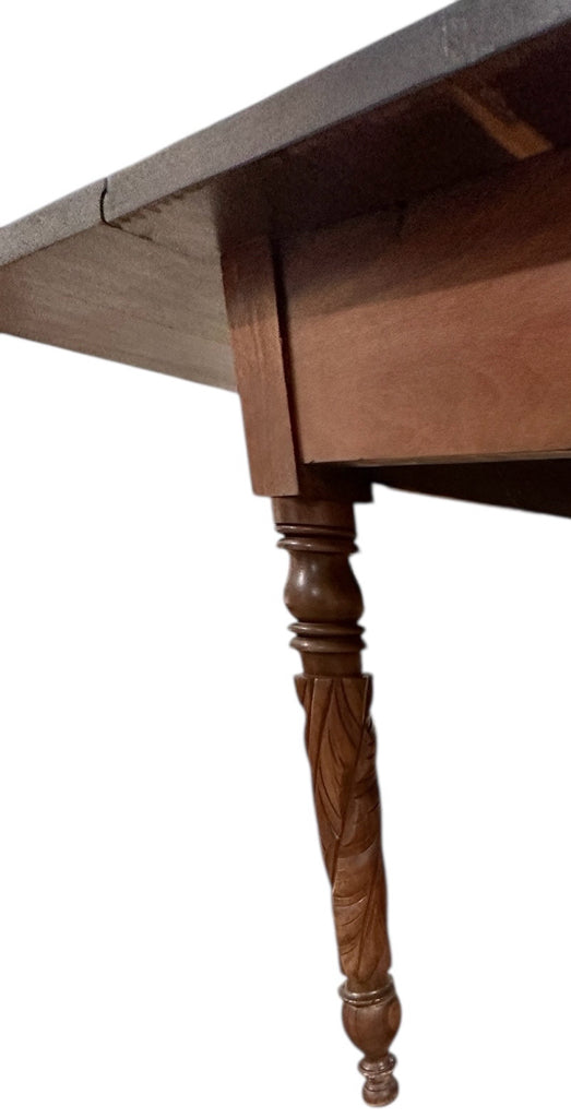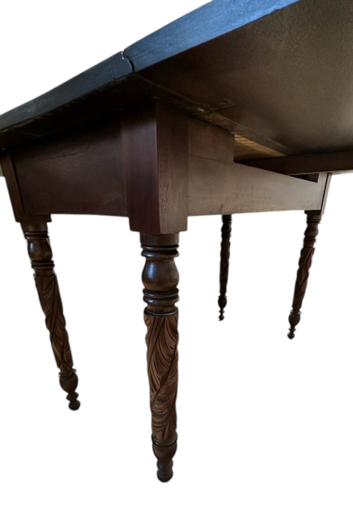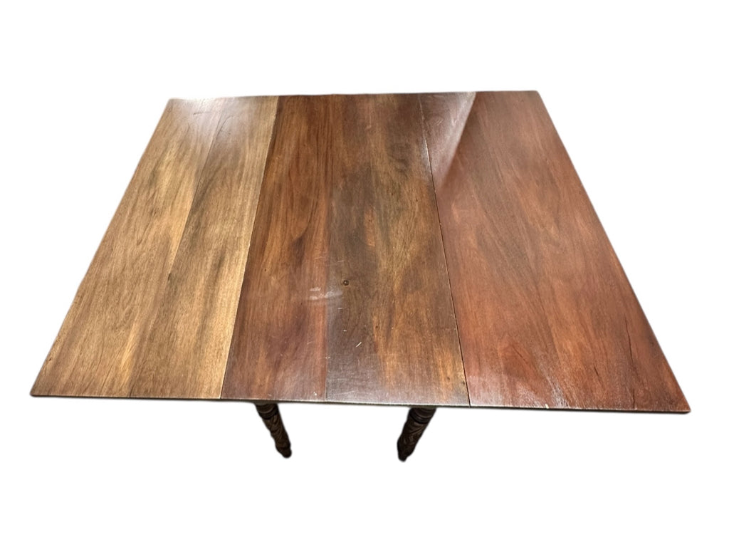 Antique drop leaf table w/carved legs, black walnut?, 50"L x 42"W x 28"H