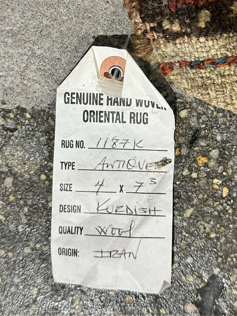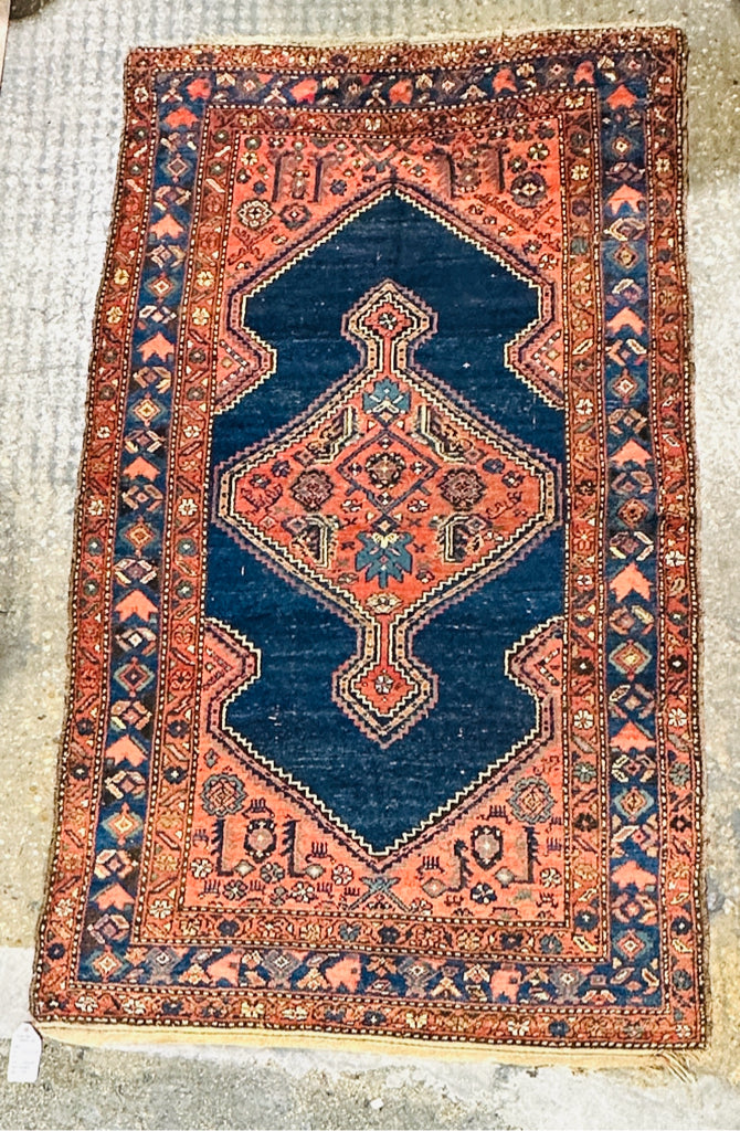 Antique handwoven Kurdish wool rug, navy/red, 4' x 7'3"