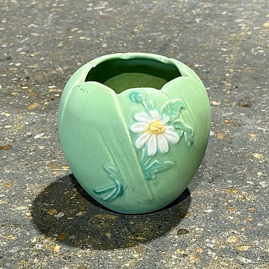 AS-IS Weller Pottery Daisy Vase, Green, 5" Dia x 5" H