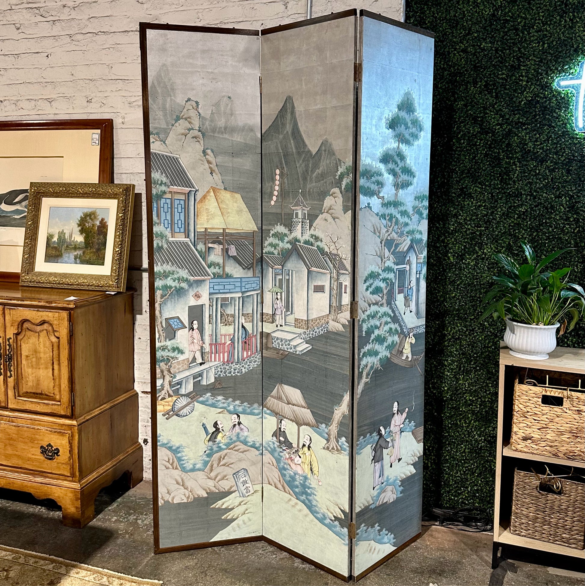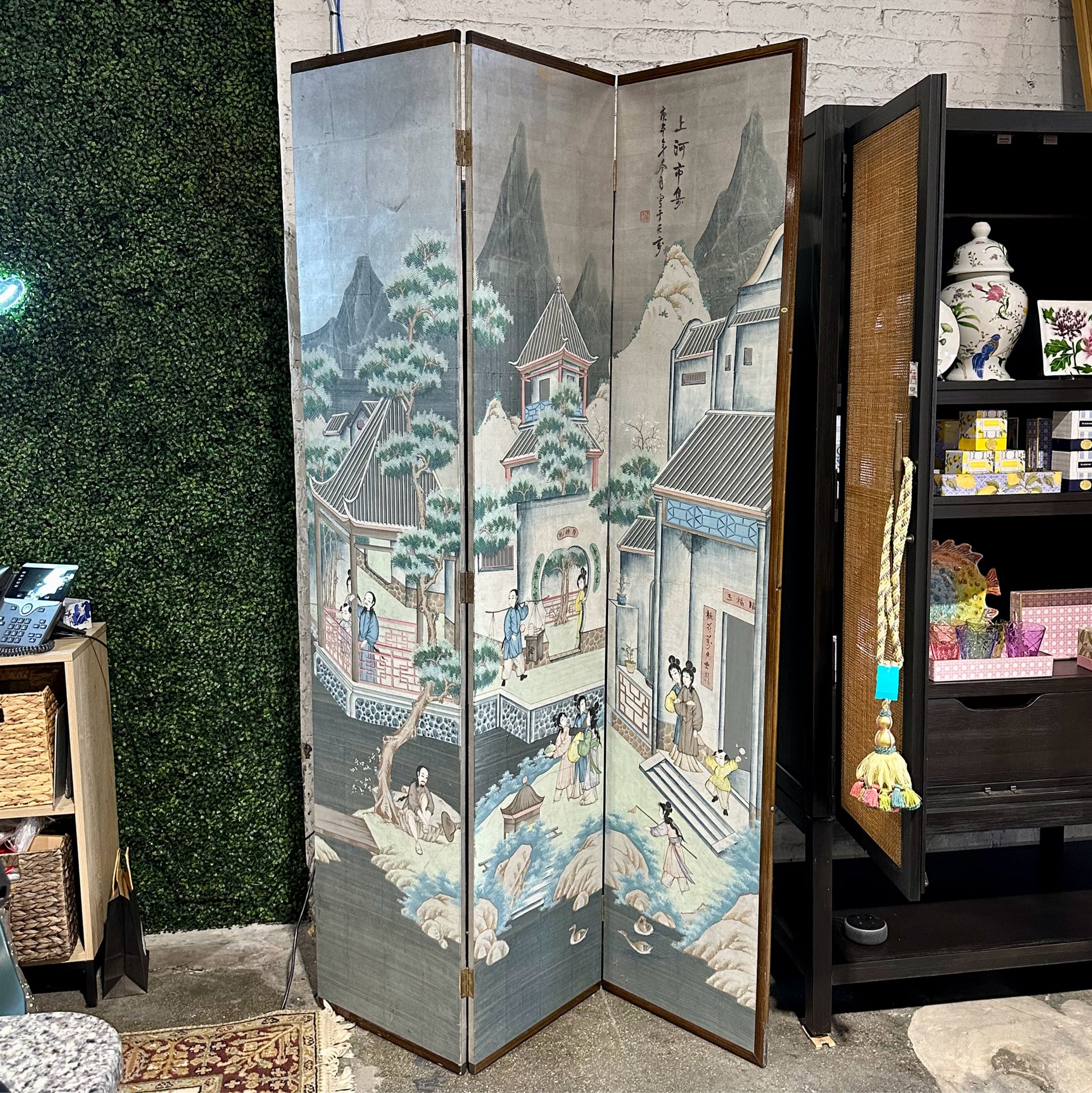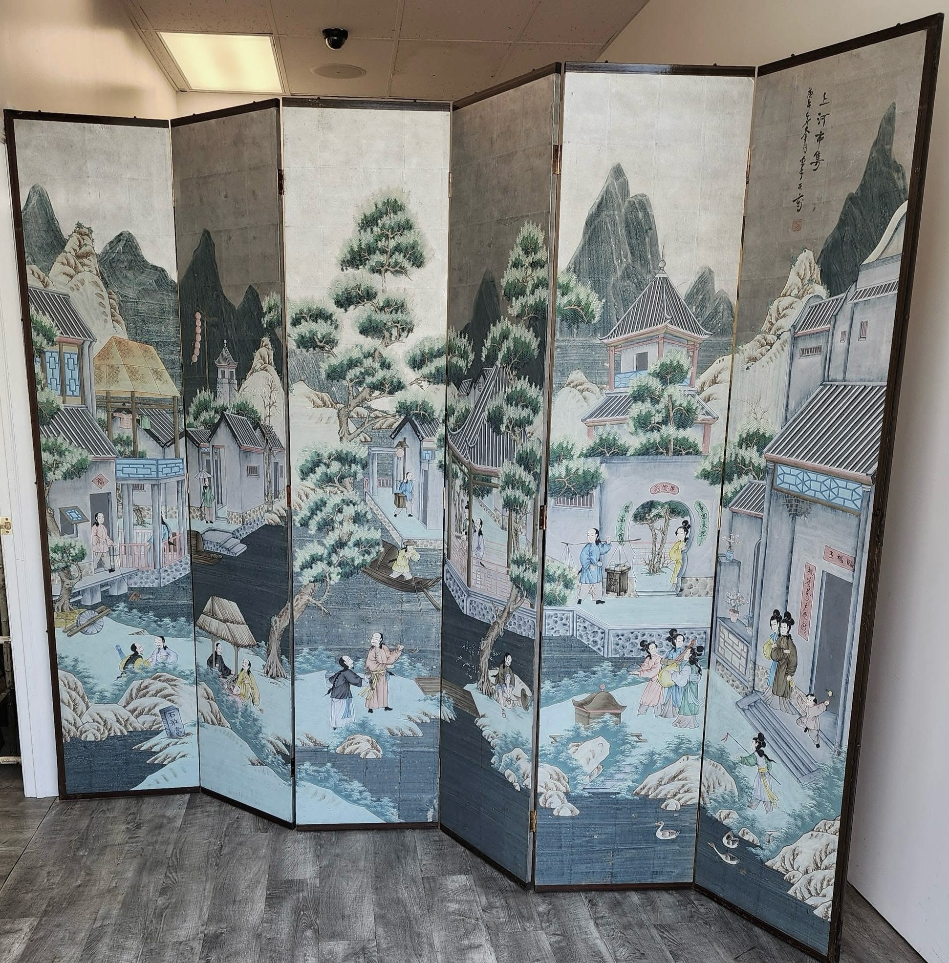 Asian Painted Screen 6-Panel Room Divider, 106.5" W x 84" H