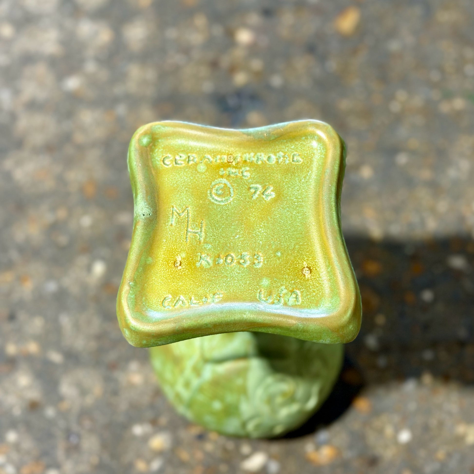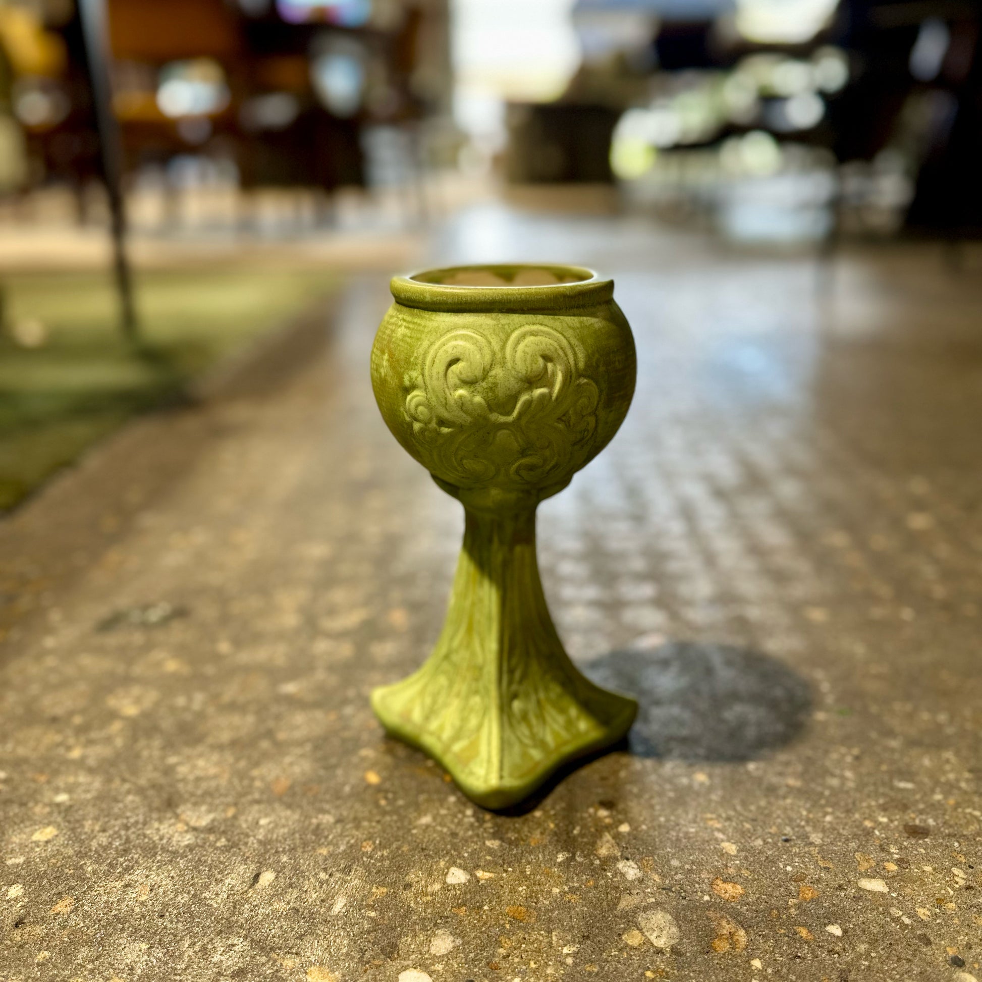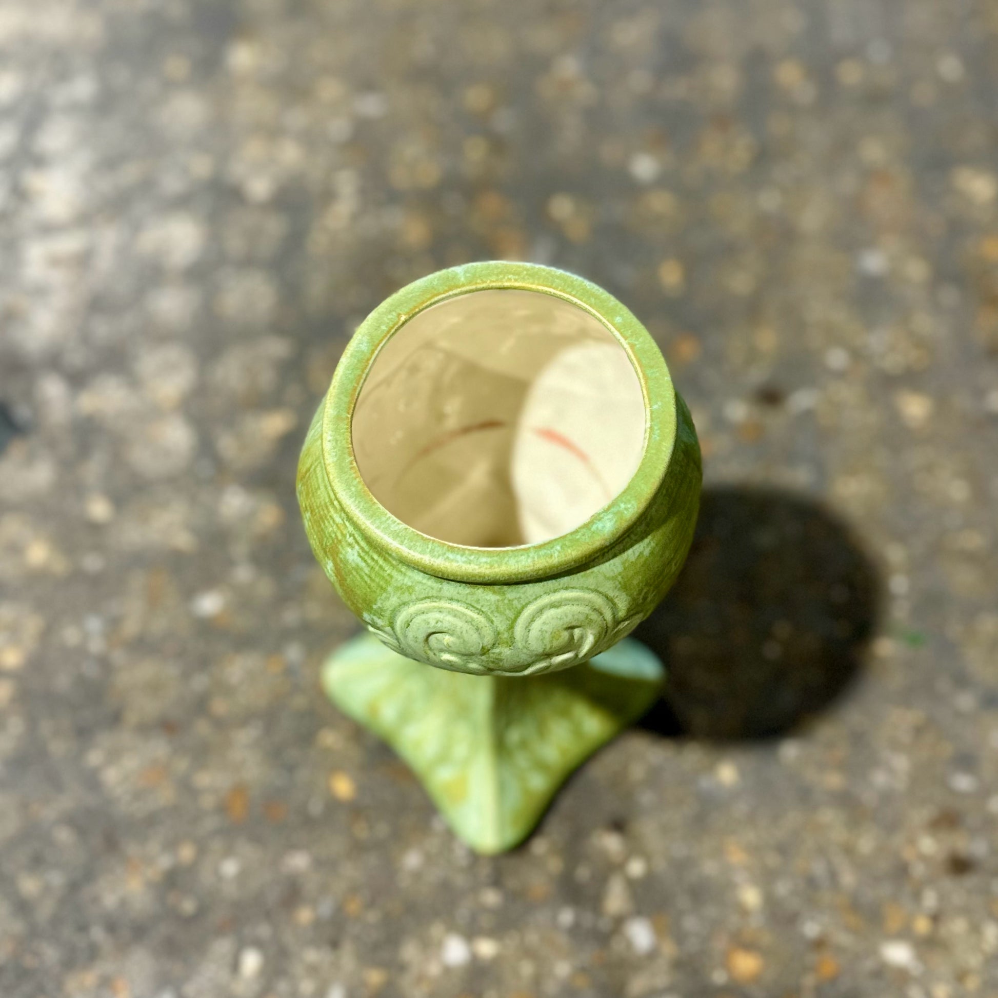 Ceramichrome 1974 Art Nouveau Chalice, Green Studio Art Pottery, 4" Dia x 9" H