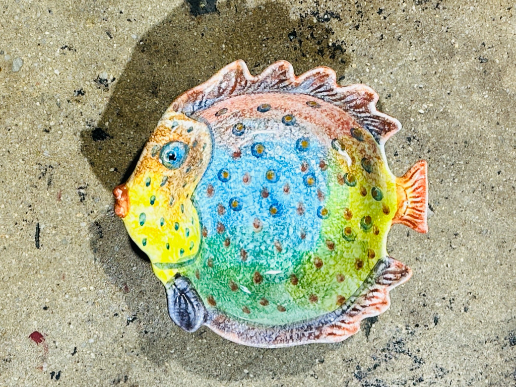 Cheerful fish bowl, Italy, 12"W x 10"D x 3"H