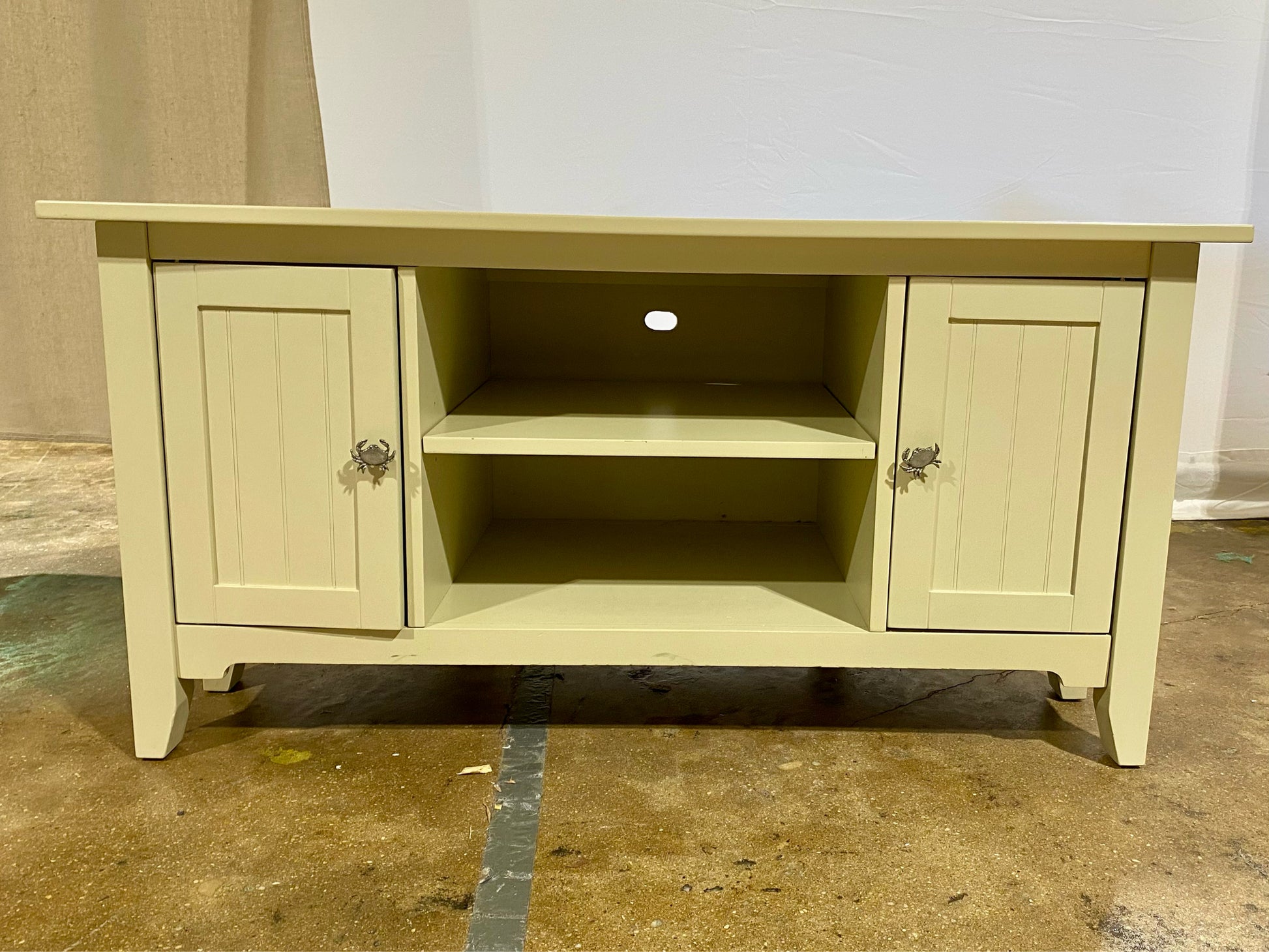 Corner TV Stand, Cream w/ Crab Knobs, 48.5" L x 21.5" W x 24" H