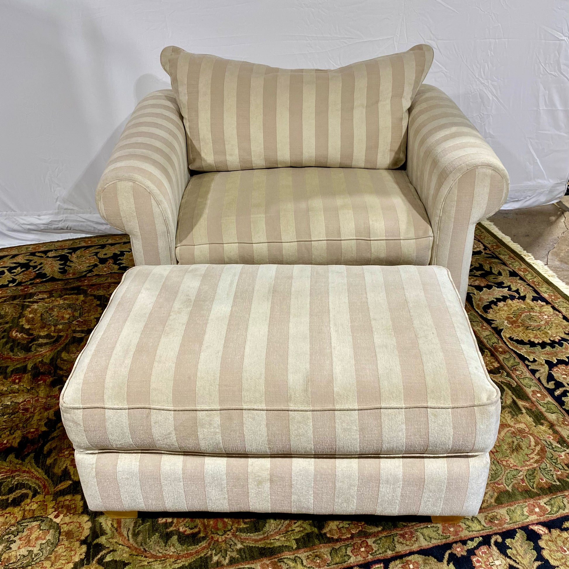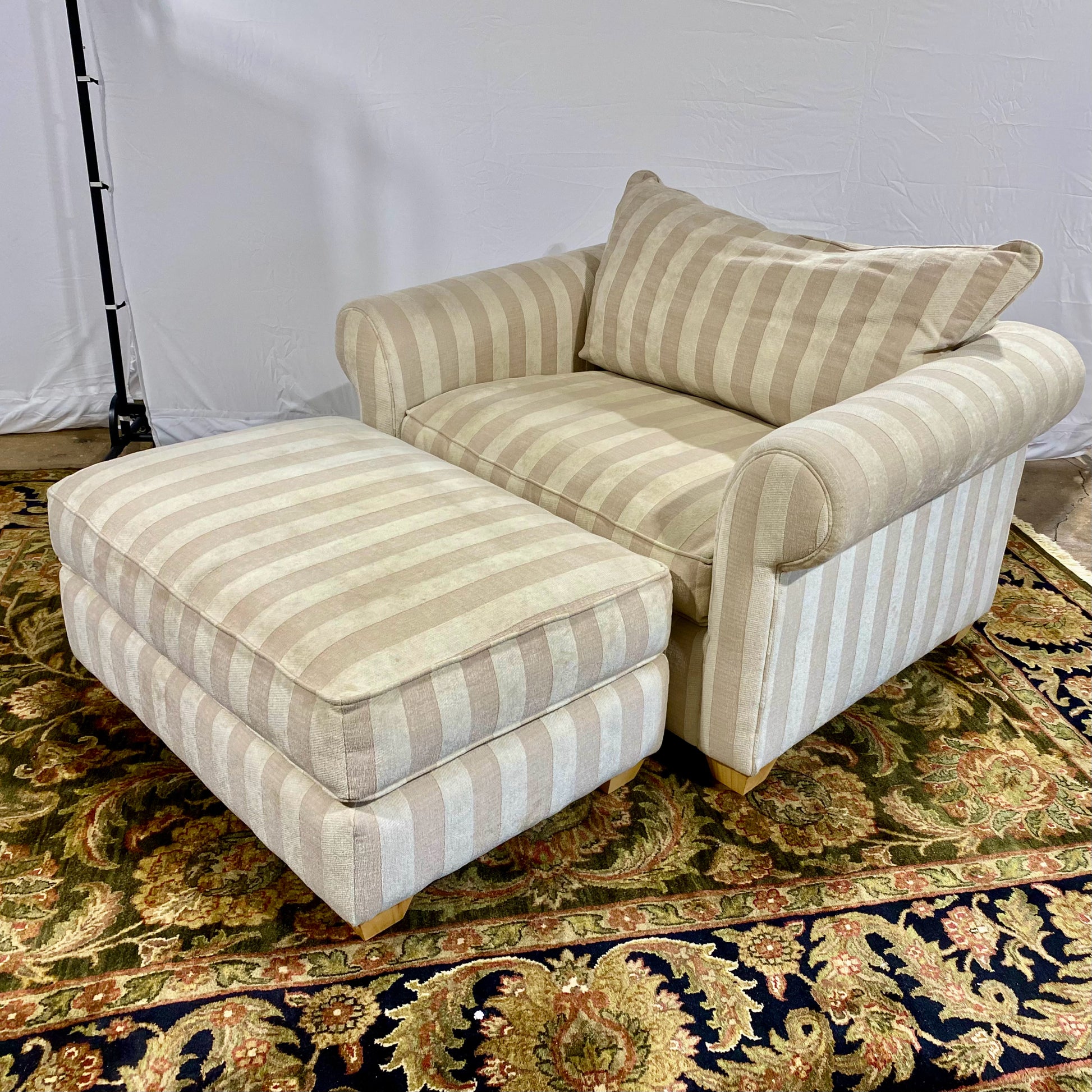 Cream Stripe Chair & Ottoman, 50'W x 36"D x 30"H (61"D w/ Ottoman)
