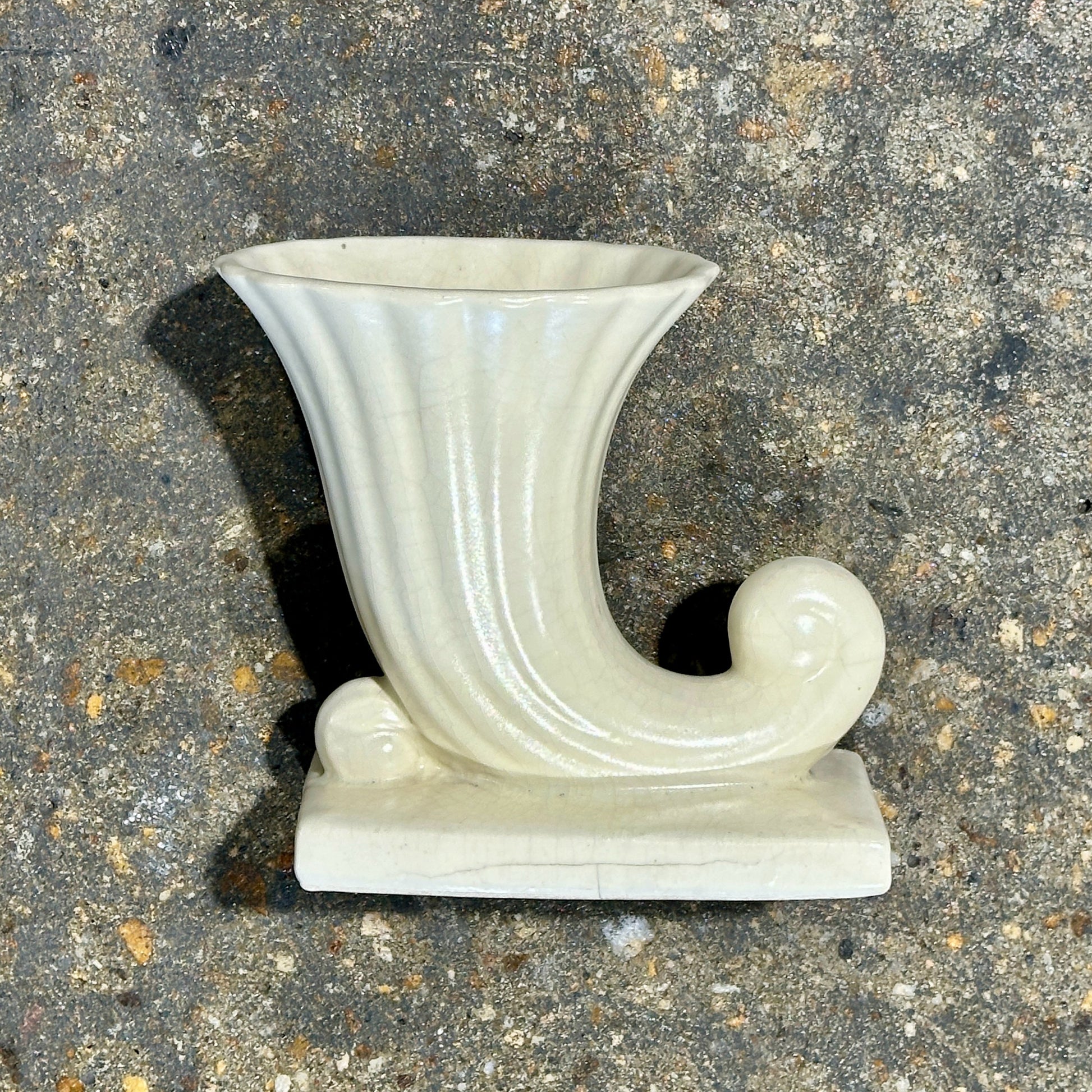 Decorative Ceramic Cornucopia Vase, Off White, 6.5" L x 4.25" W x 6.5" H