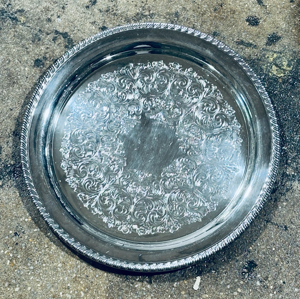 Etched silver plate platter, RogersCo, 12.5"dia