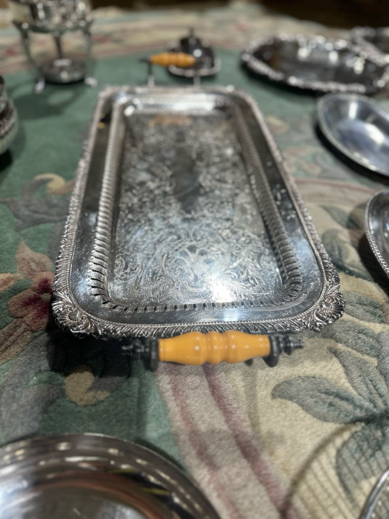 Etched Silver Platter,C.S.C, 26"L x 11.5"W x 2.5"H
