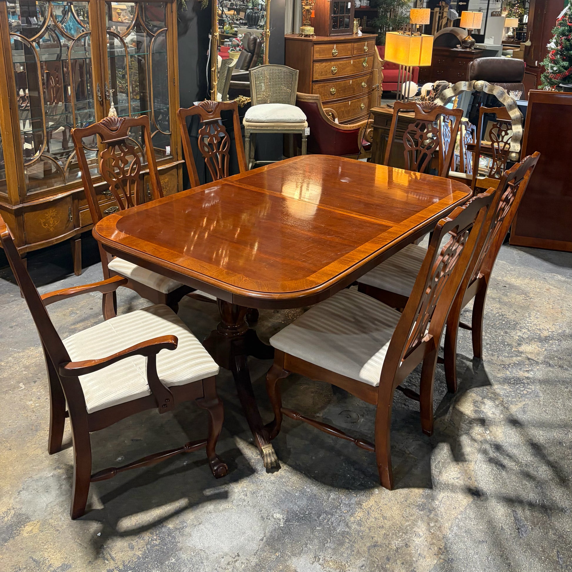 Ethan Allen Double Pedestal Table W/6 Chairs, 86"L x 44"D c 30"H