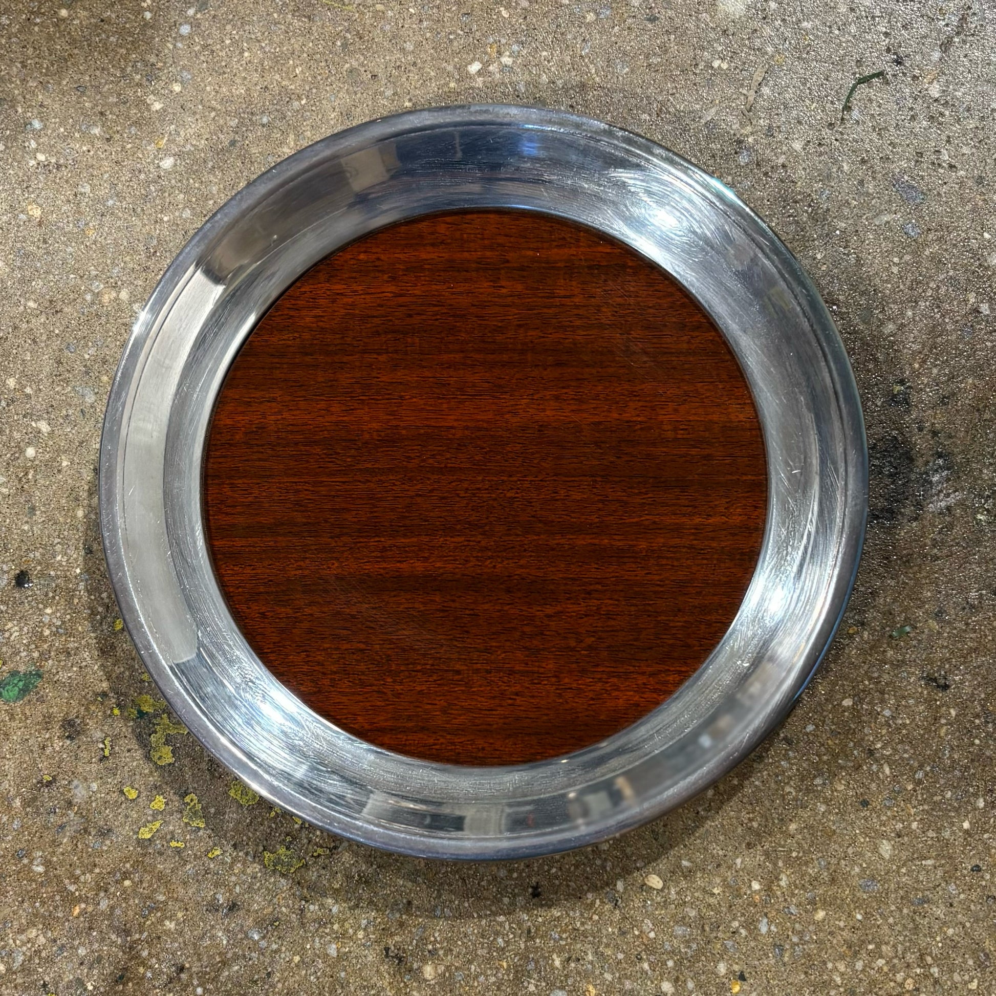 FB Rogers Round SIlverplate & Wood Tray 10.25" D x 1" H