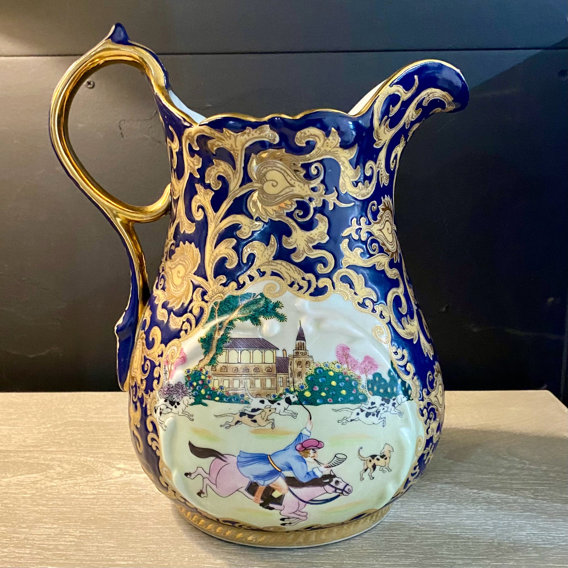 Gold and Cobalt Etched Vase/Pitcher 13"H x 6" Diameter