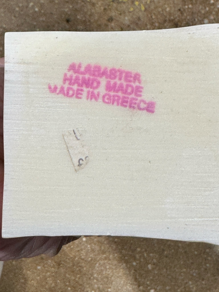 Greek god statue, handmade alabaster, 8.5"H x 2.5"W x 2.5"D