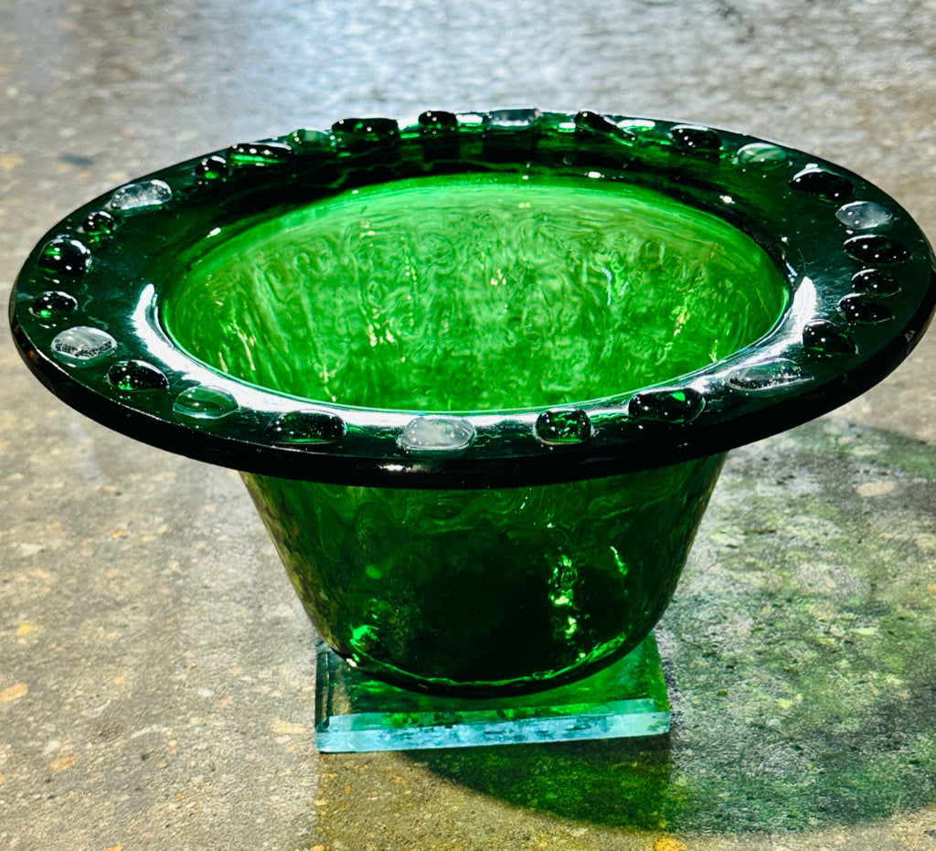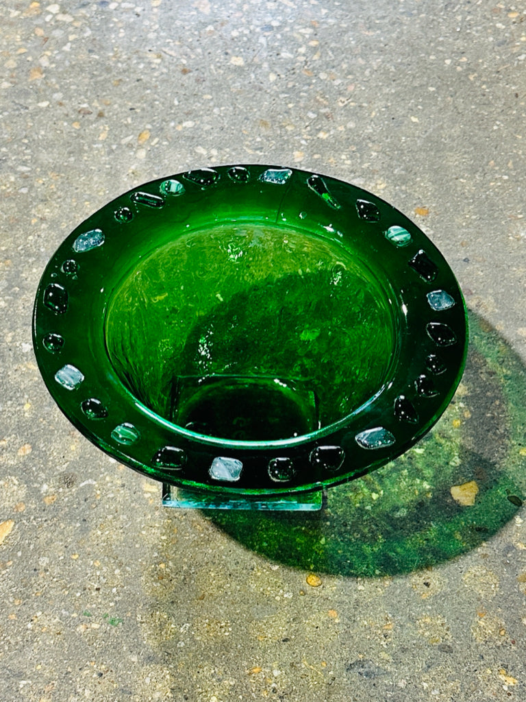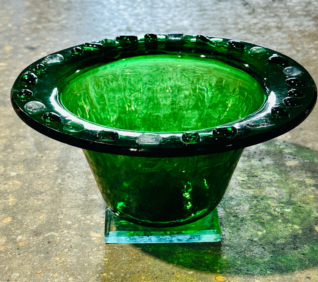 Green glass decorative bowl, signed, 11.5"W x 11.5"D x 6"H
