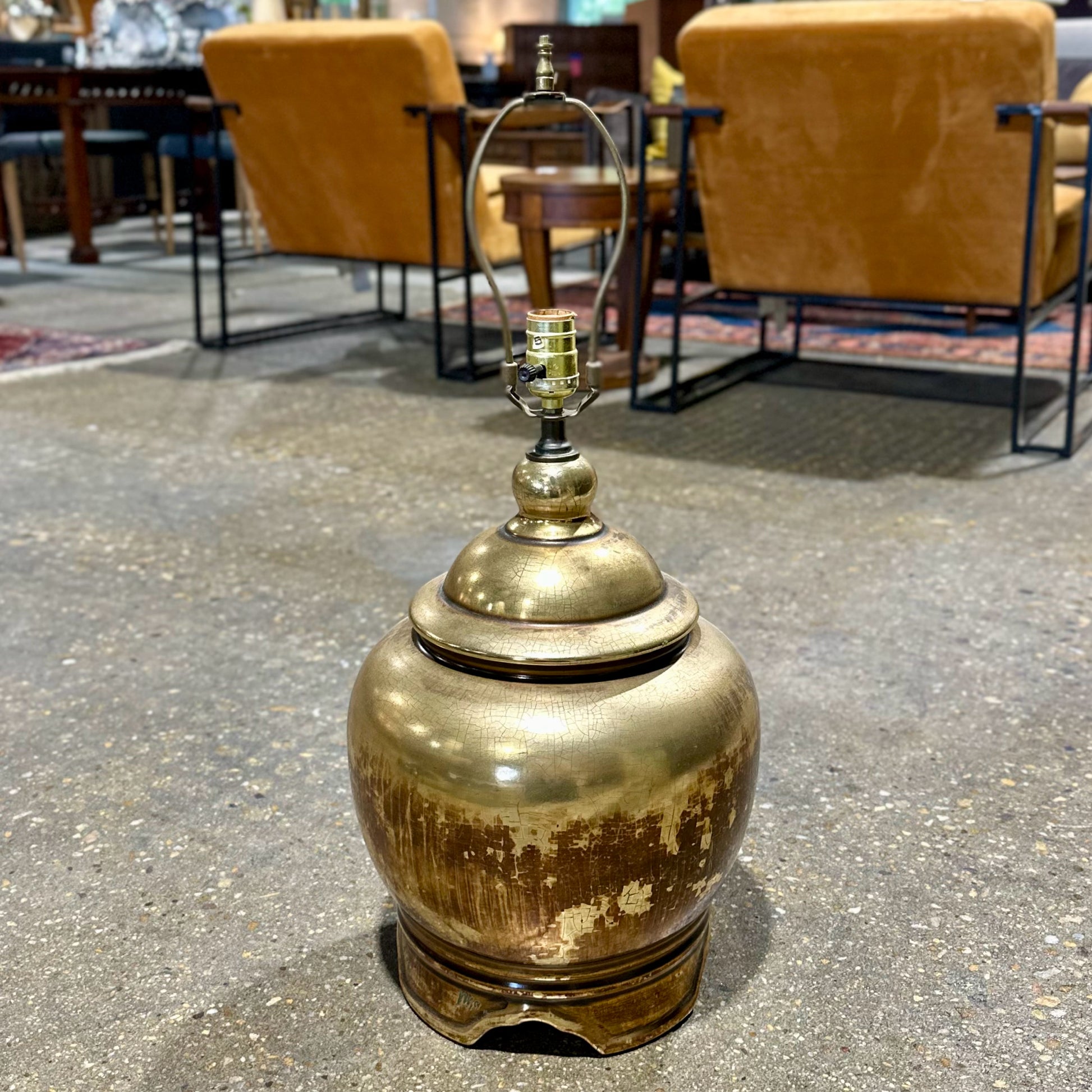 Hollywood Regency Ginger Jar Style Table Lamp, Brass / Gold, 12" Dia x 26" H
