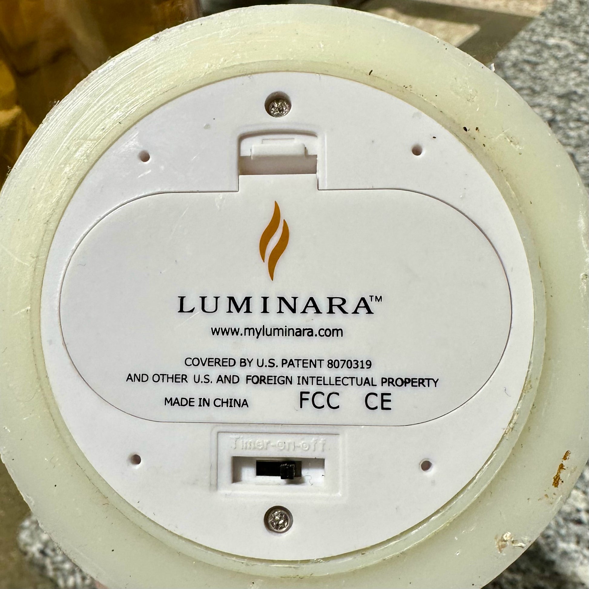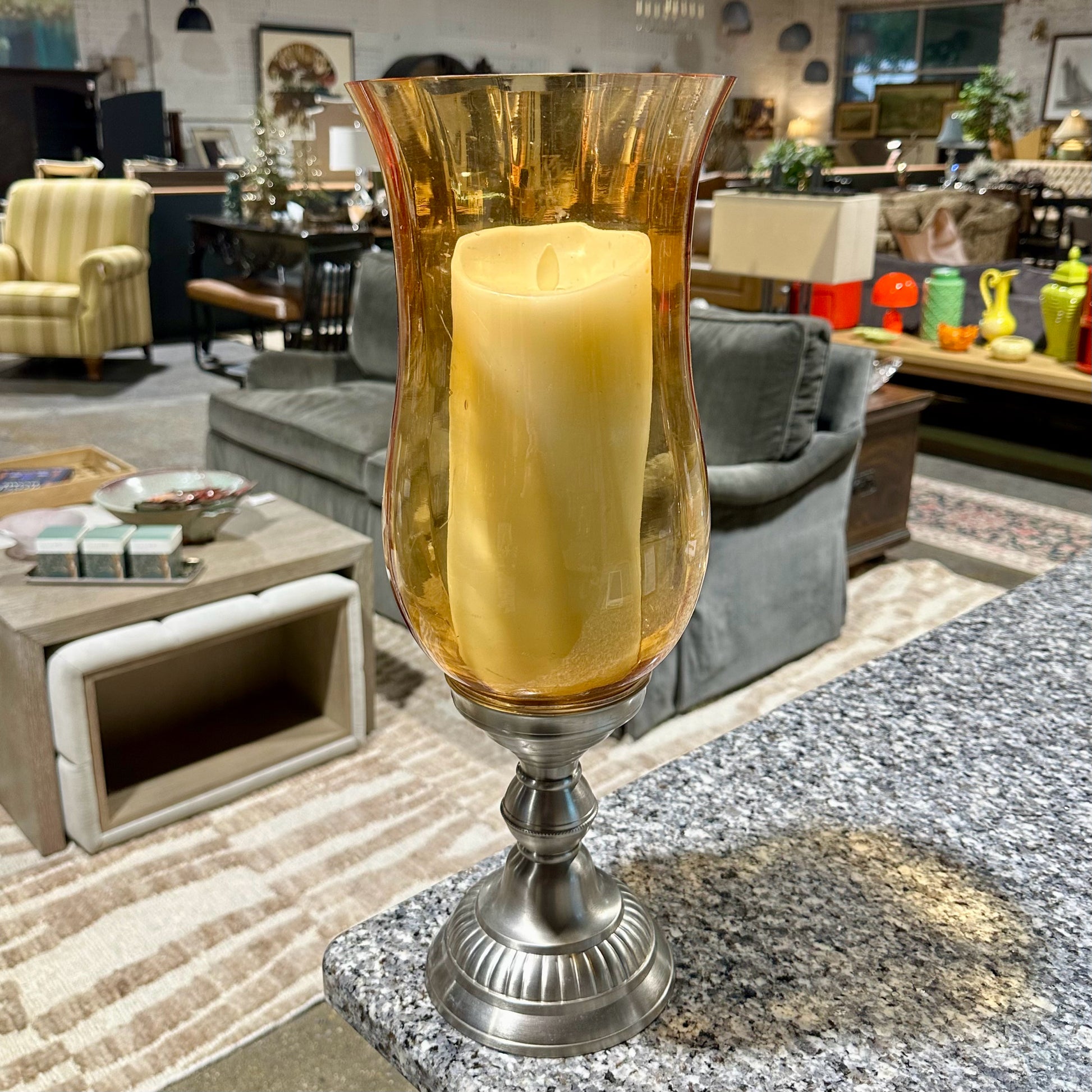 Hurricane Candleholder w/ Luminara Pillar Candle, Orange Glass, 7" Dia x 19" H