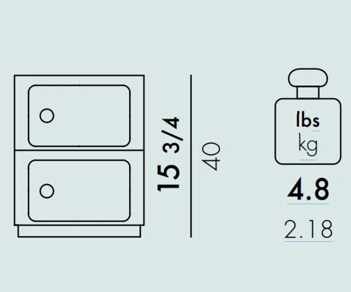 Kartell Componibili 2-Door Round Storage Unit, Red Glossy, 12.6 Dia x 15.75" H