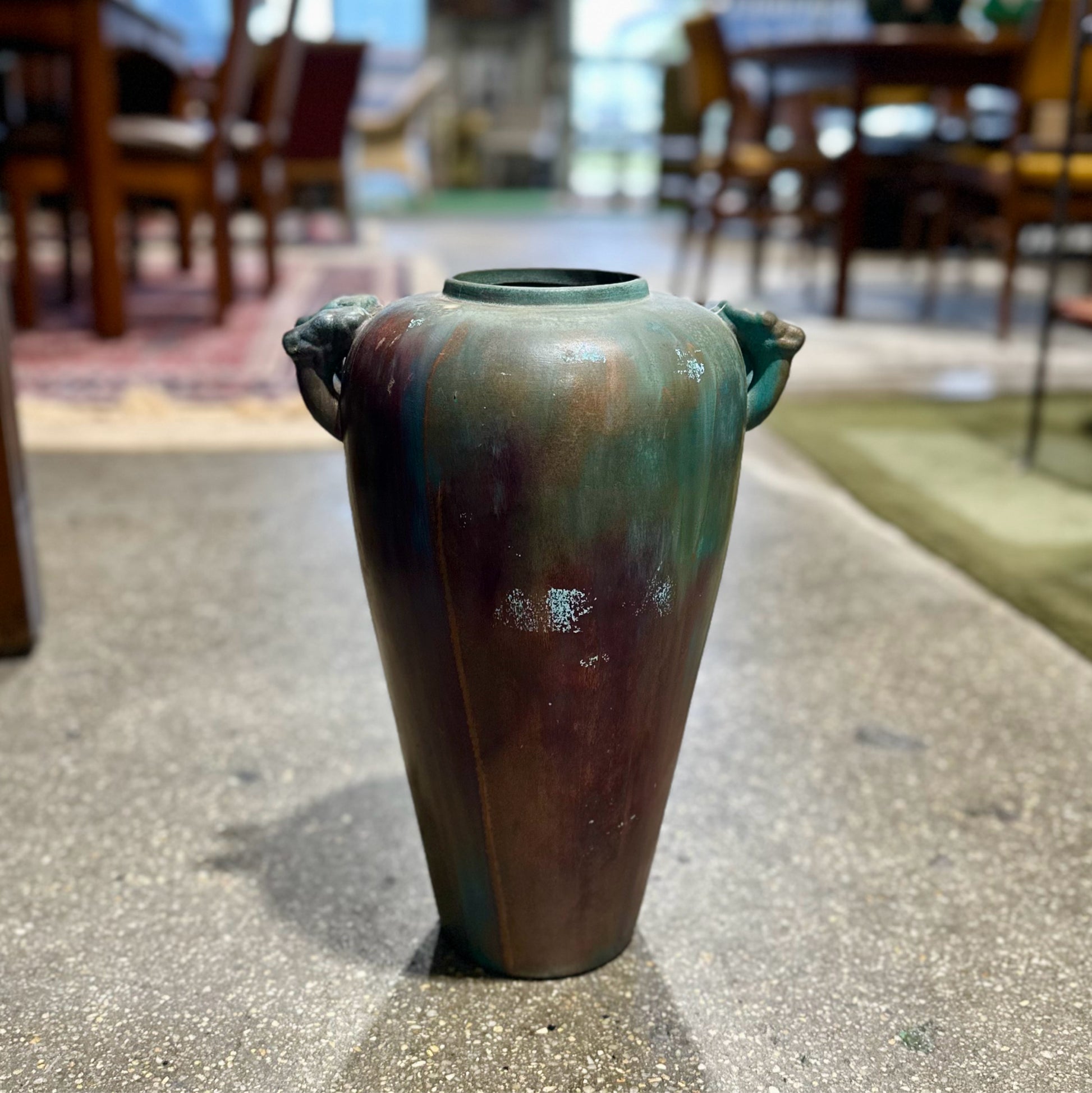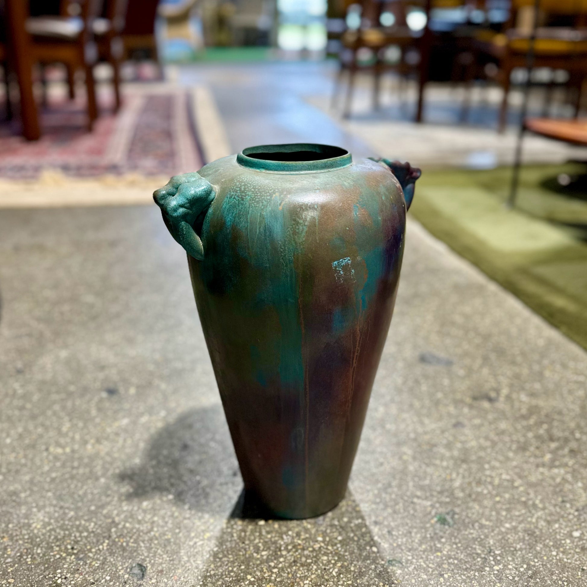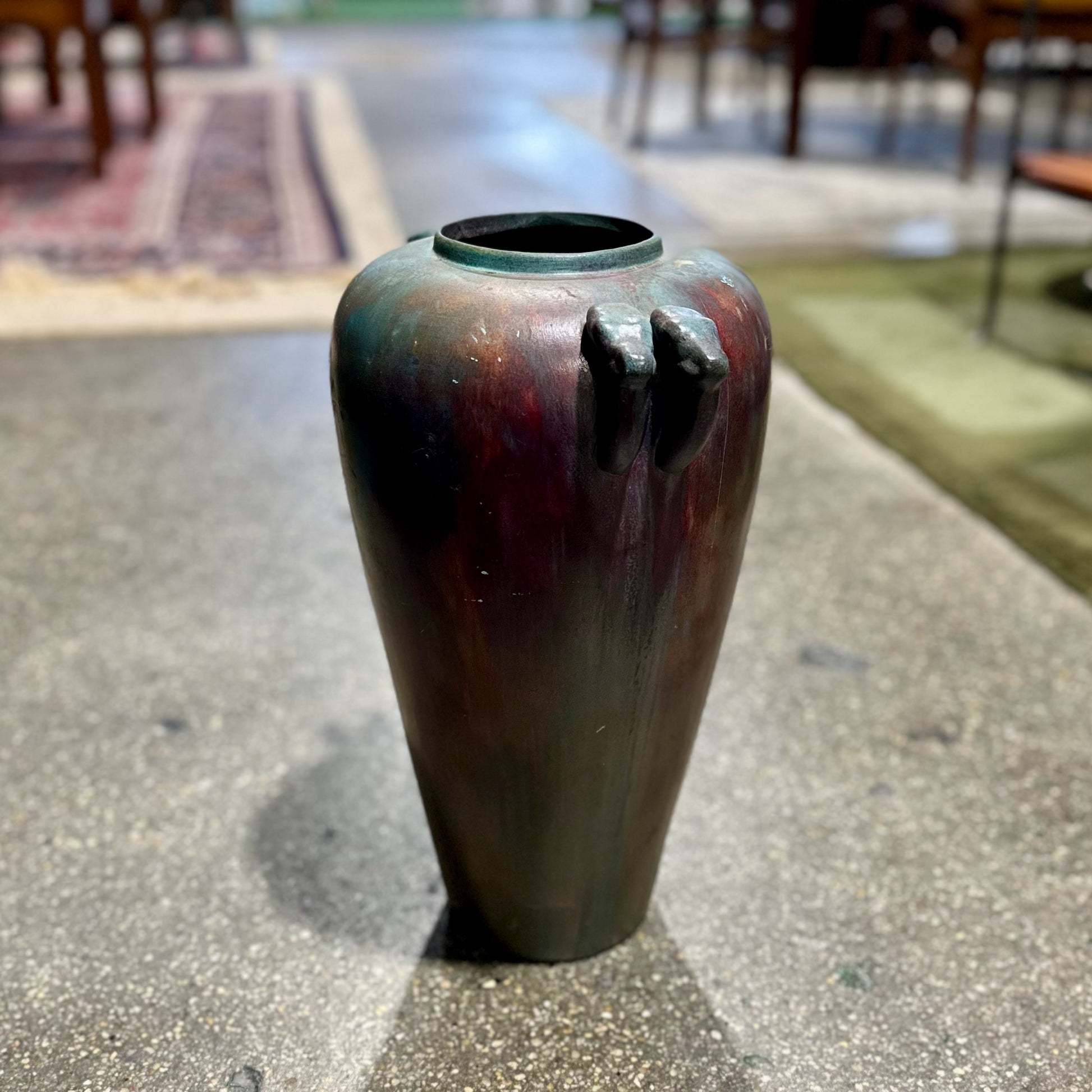 Large Teal & Plum Ceramic Raku Vase, 11" L x 9" W x 16.5" H