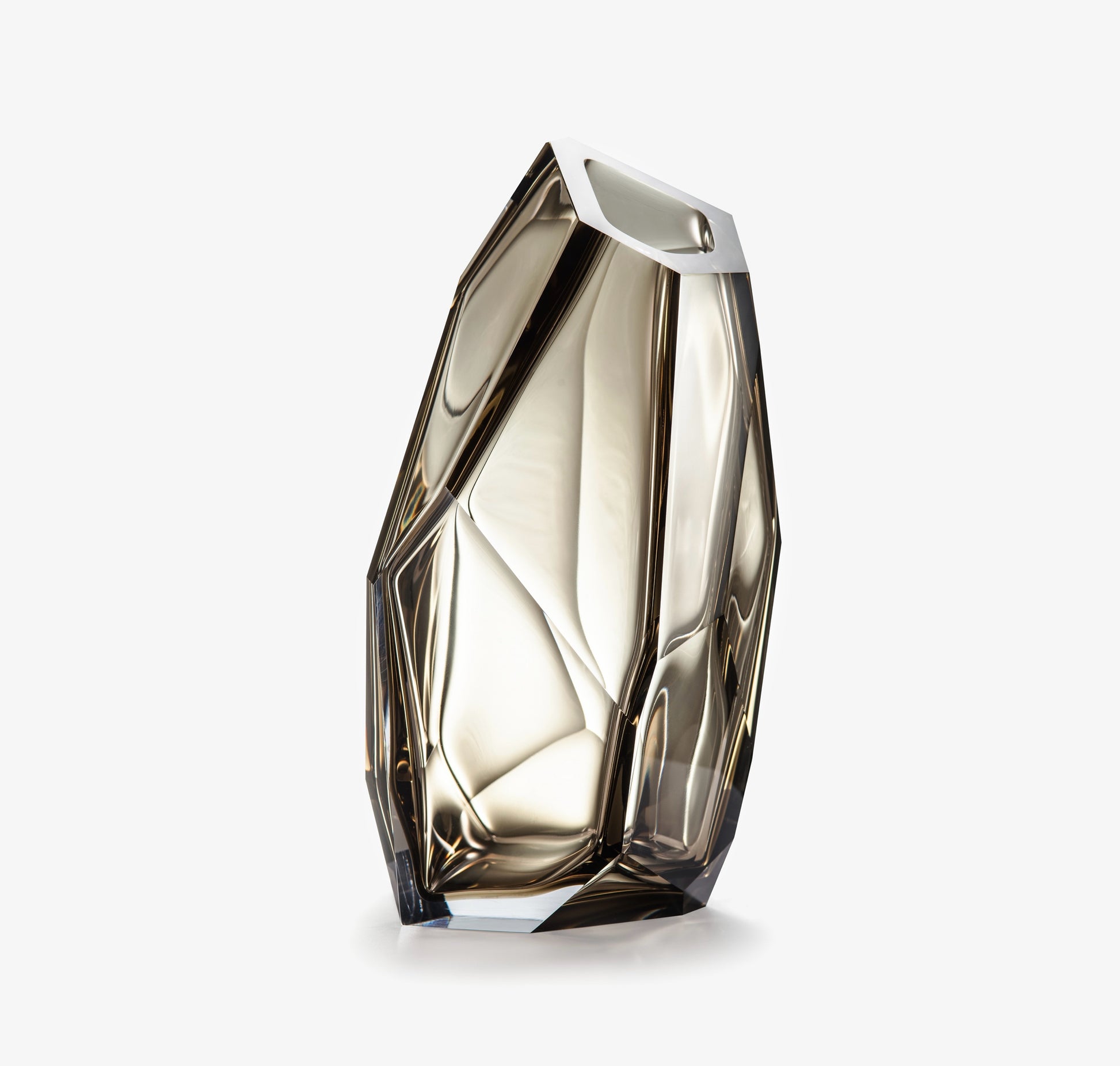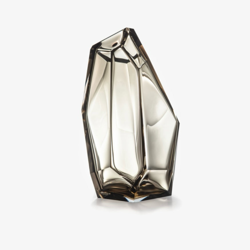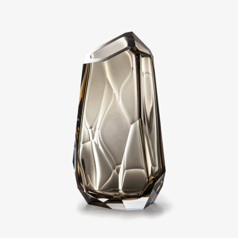 Lasvit Crystal Rock Vase, Smoke, 8.5" Dia x 16.9" H