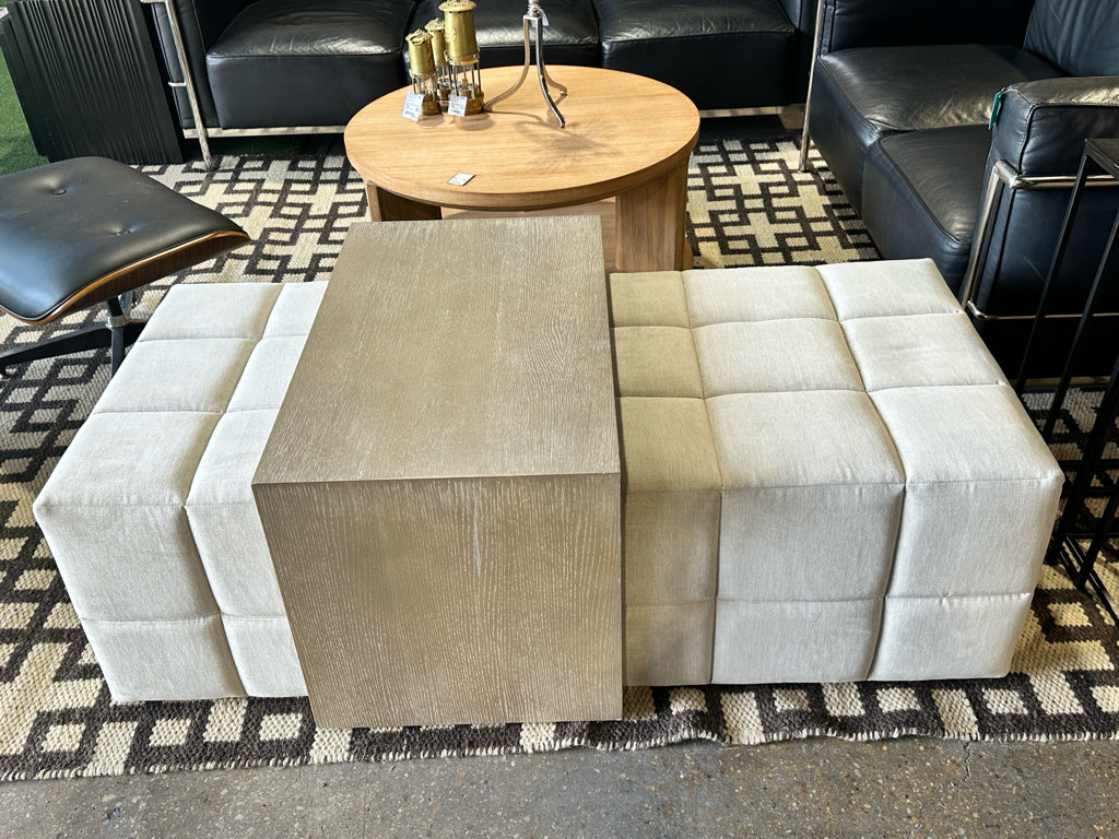 Lumin Cocktail Ottoman, weathered gray/tufted upholstery, 54"W x 30"D x 19"H