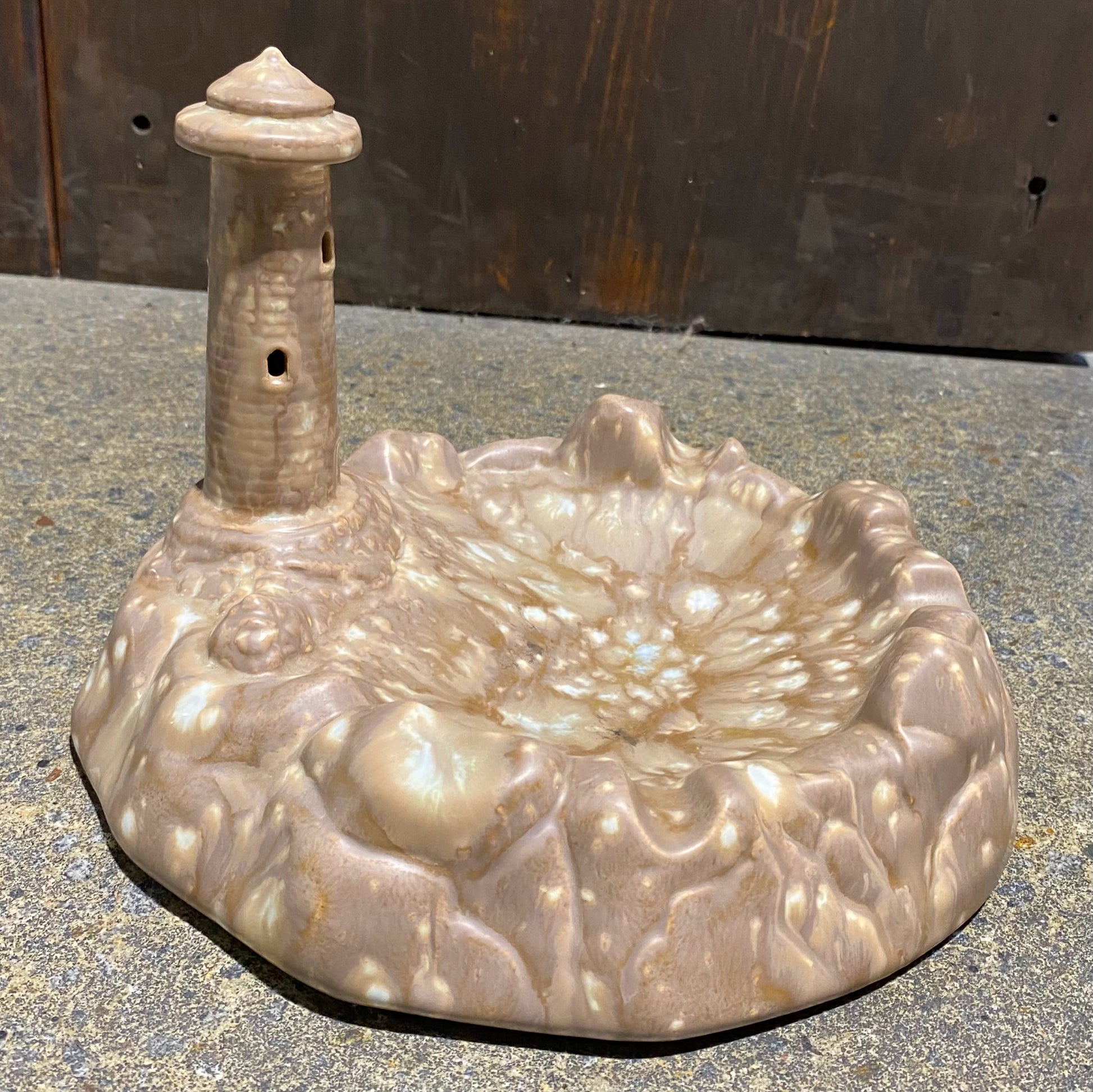 MCM Ceramic Lighthouse Ashtray, Sandy Brown, 9" W x 8.5" D x 6.5" H