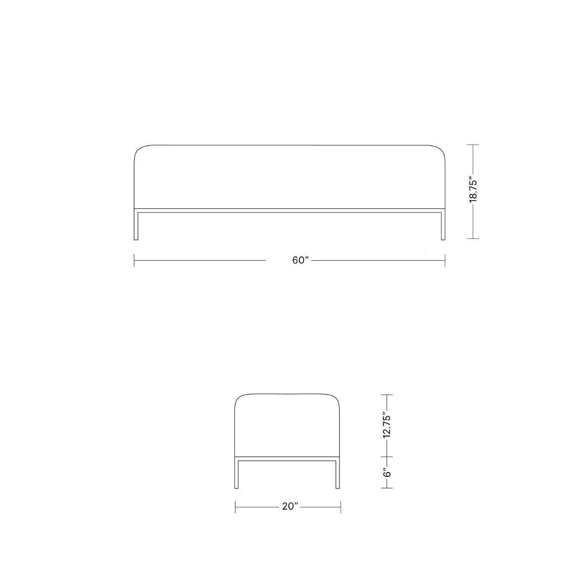 Miller Bench, Green Performance Velvet & Matte Brass, 60" L x 20" W x 18.75" H