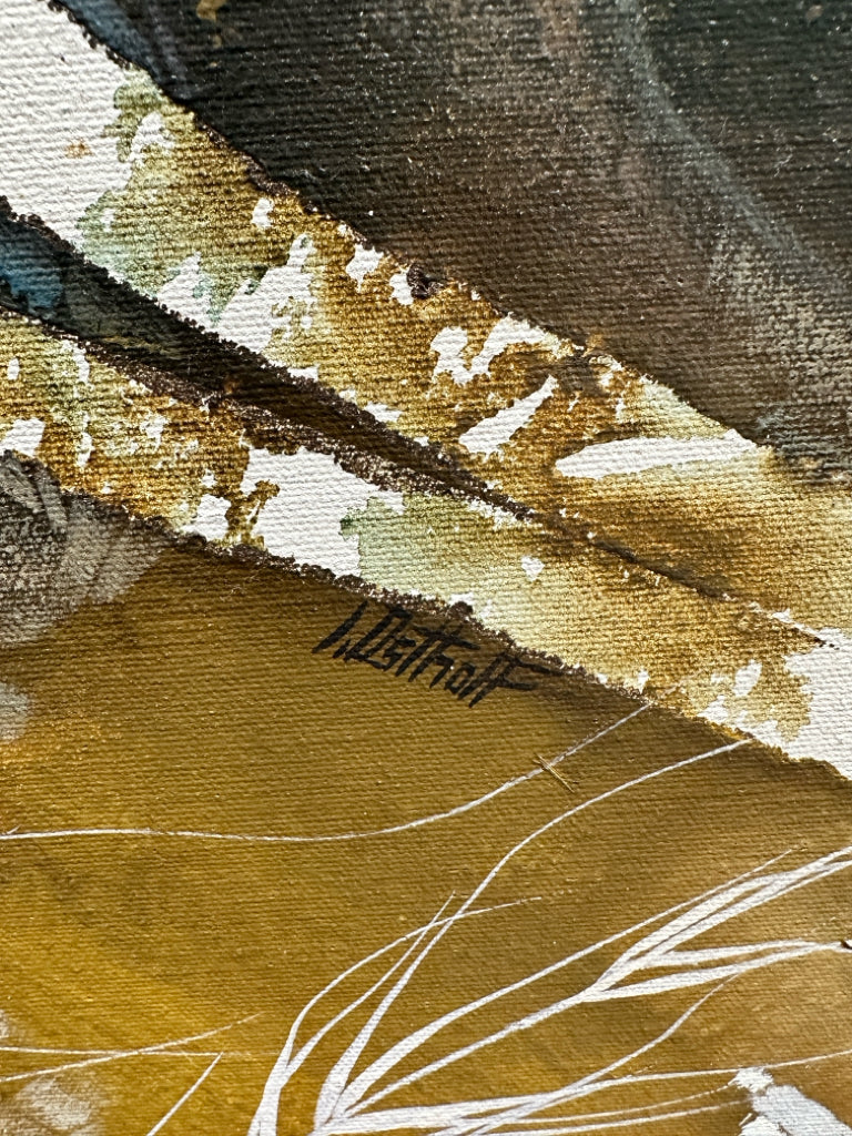 ORIGINAL J.Osterhoff abstract, oil on canvas, c. 1970s, 47"W x 54"H