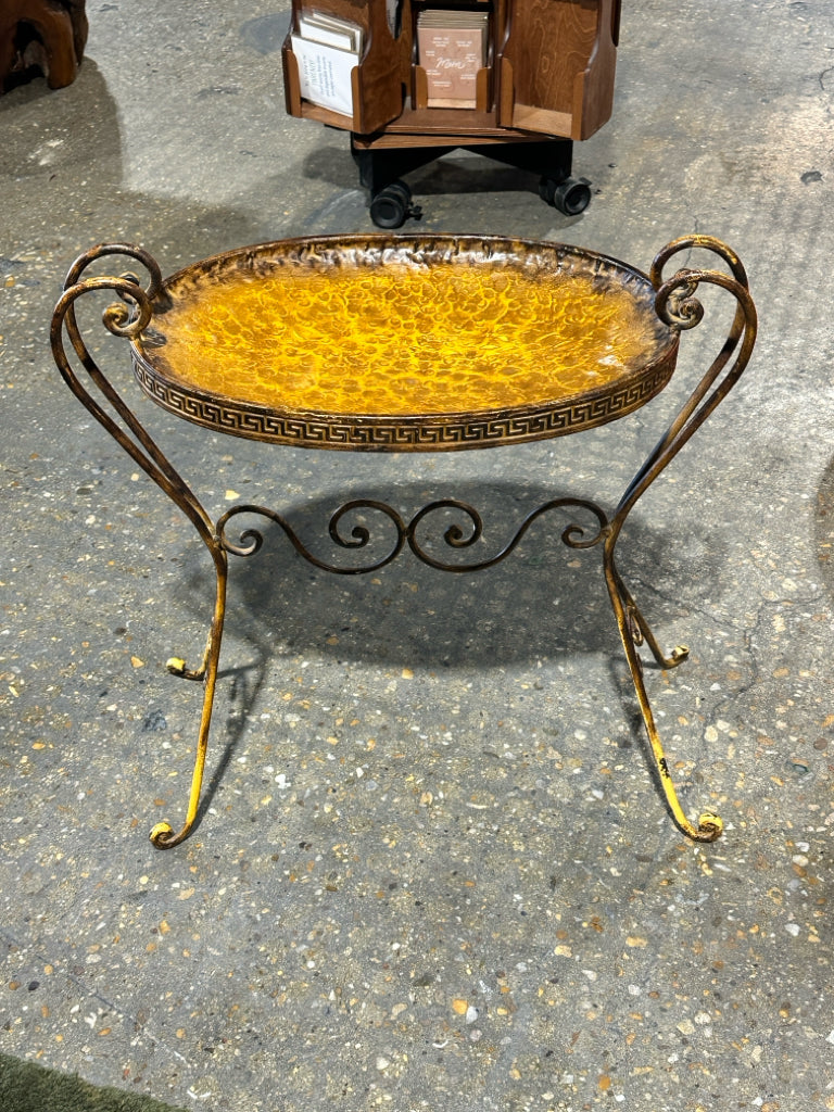 Oval metal table, Greek key motif, 24"L x 12"W x 24"H
