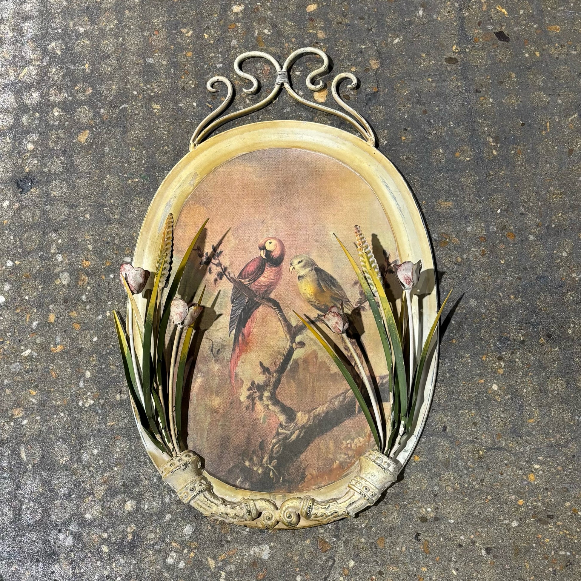Painted Wrought Iron with Birds & Flowers 27" L x 16" W x 3.5" D