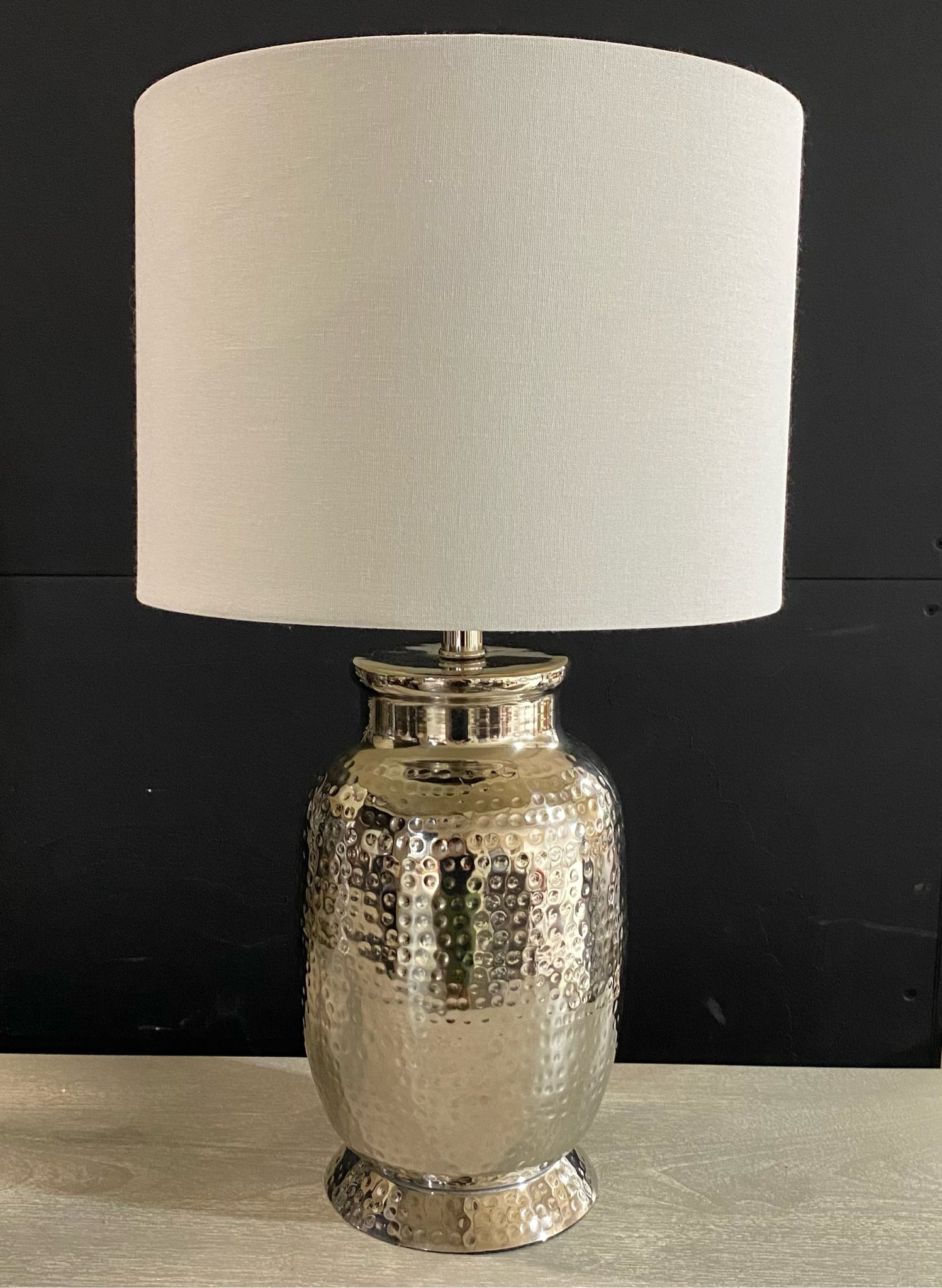 Pair Of Hammered Metal Lamps, 14"D x 28"H