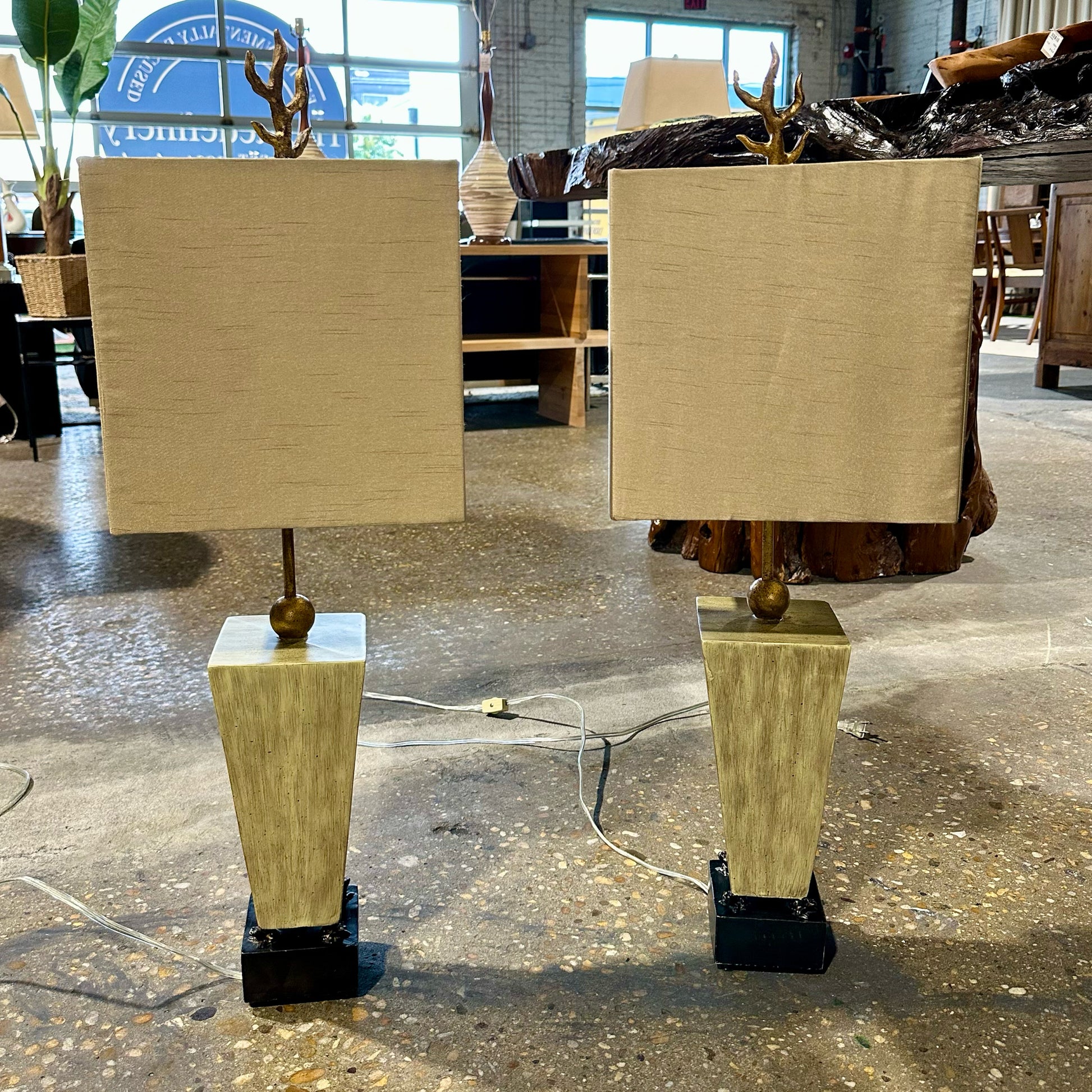 PAIR of Lucas + McKearn Grenoille Lamps, Gold & Black, 10" L x 10" W x 31" H