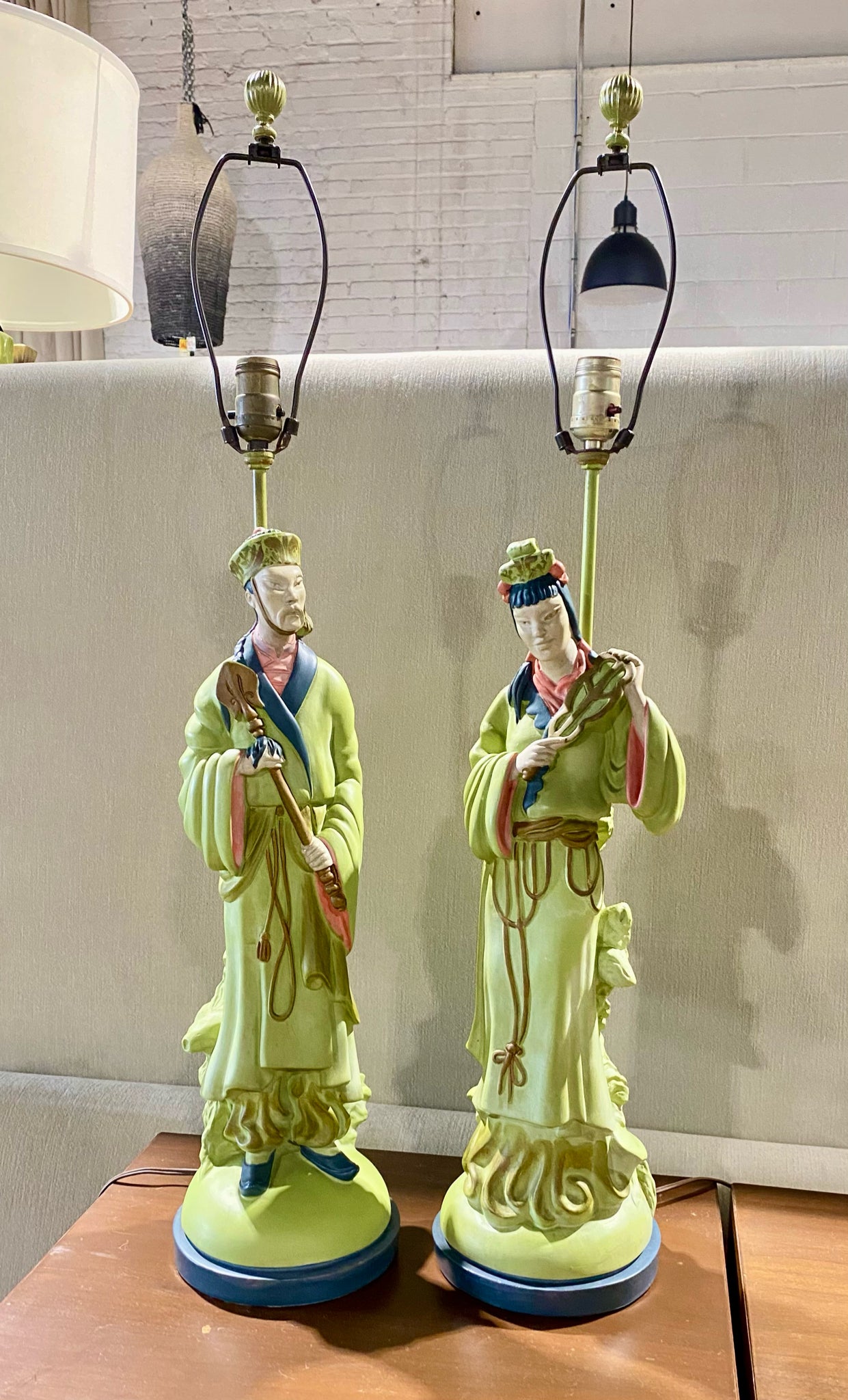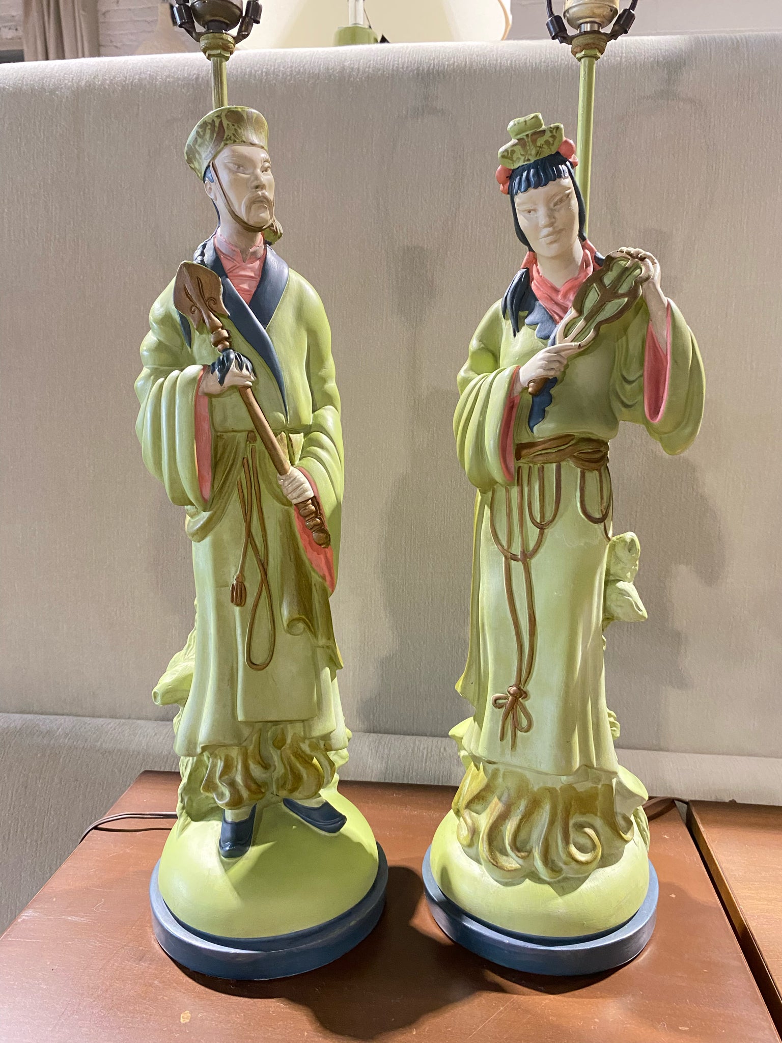 Pair of Original Earle Chapman Lamps, Chinoiserie - Style Figures, 34"H x 7"D