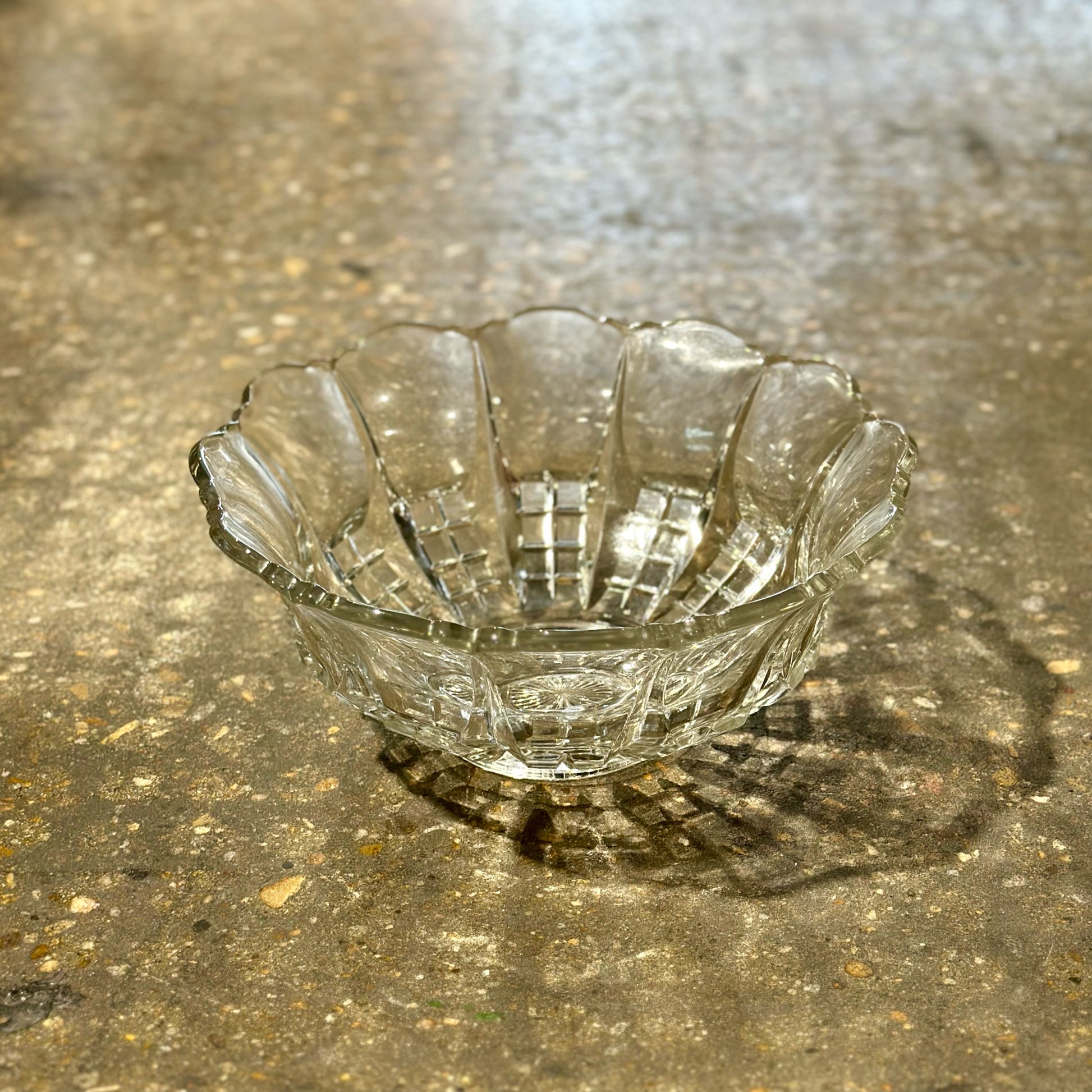 Pressed Glass Bowl w/ Scalloped Edge, Clear, 12" Dia x 5.5" H