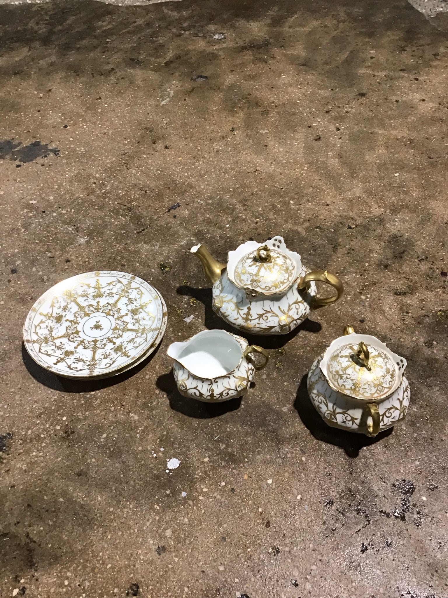 RC Moliere Handpainted Teapot, Sugar / Creamer and Two Plates