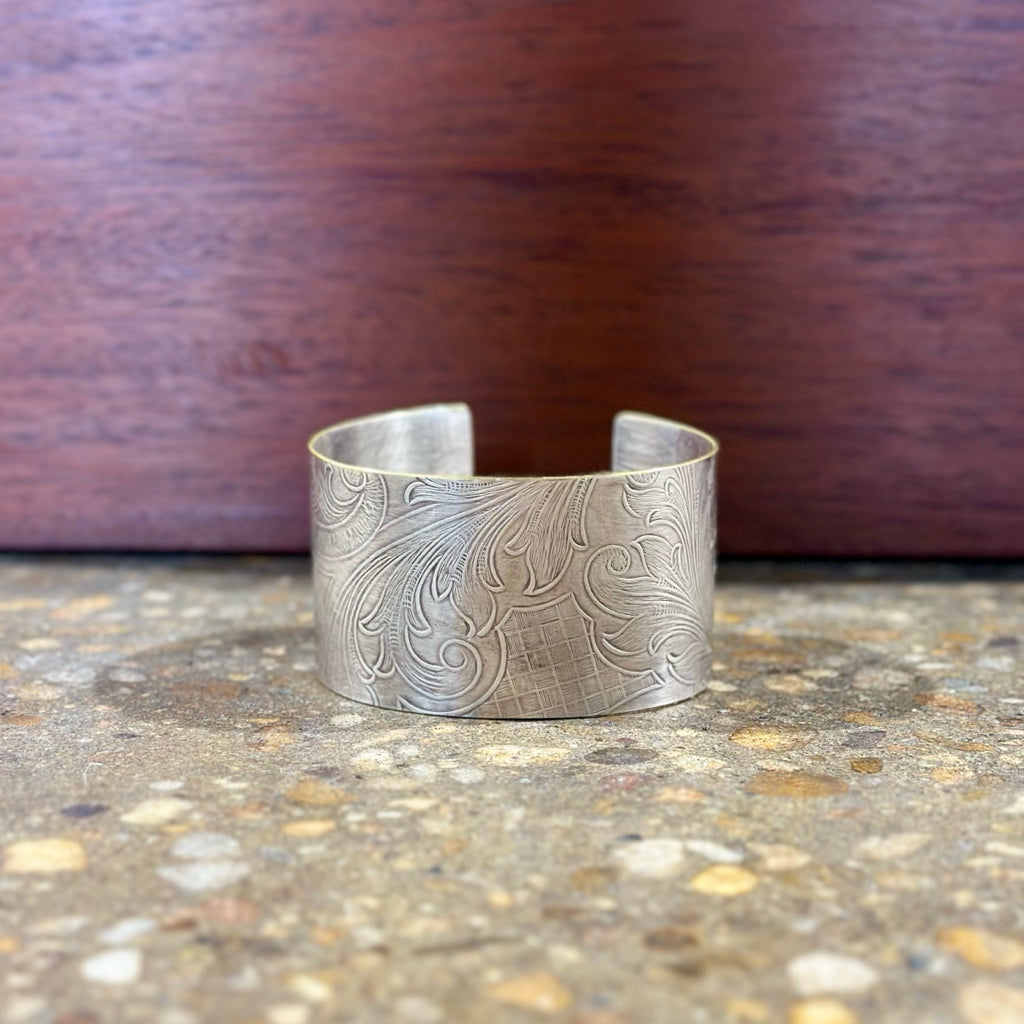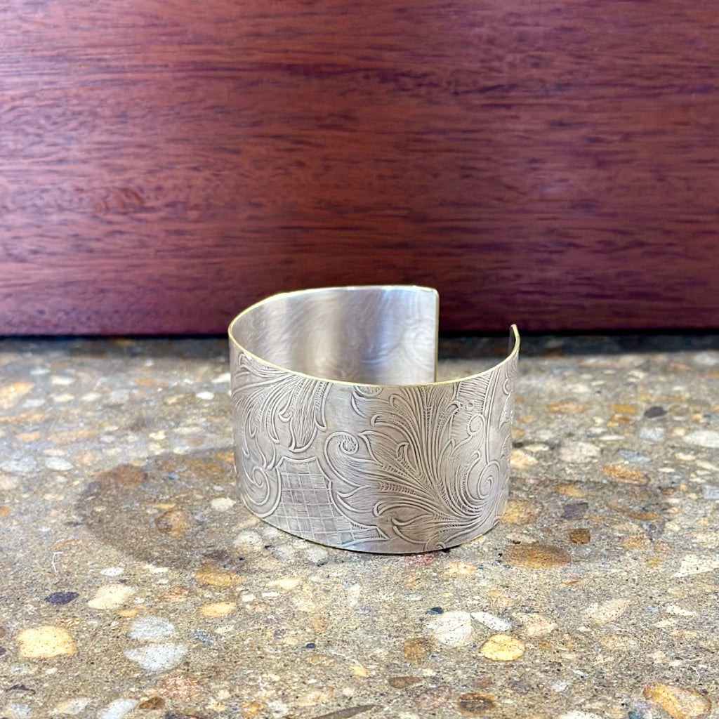 Silverplate over brass wide botanical cuff