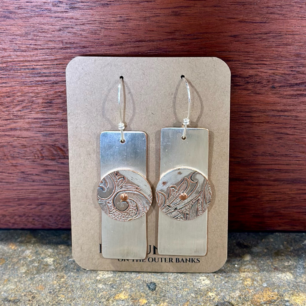 Silverplate over copper riveted rectangle earrings