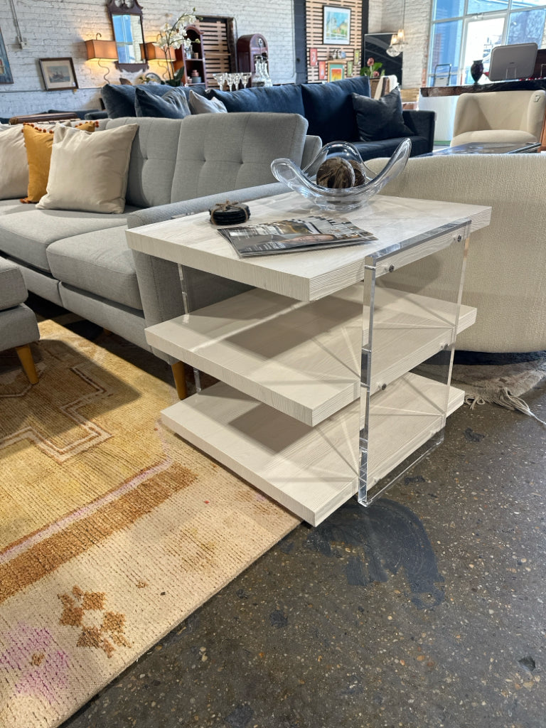 NEW St. Kitts end table, acrylic/white, 26"x26"x24"H