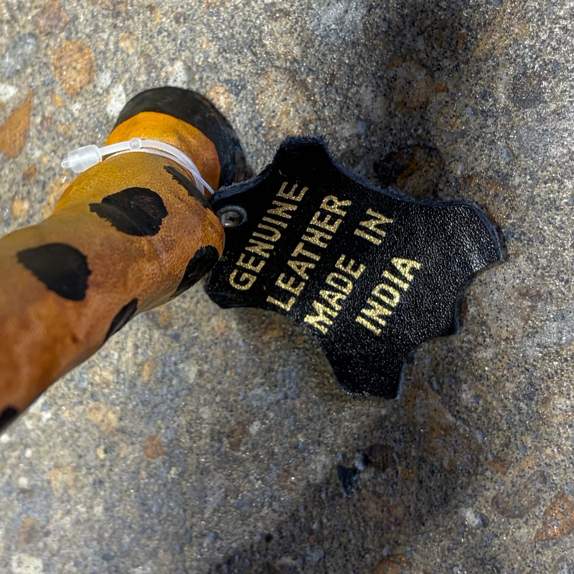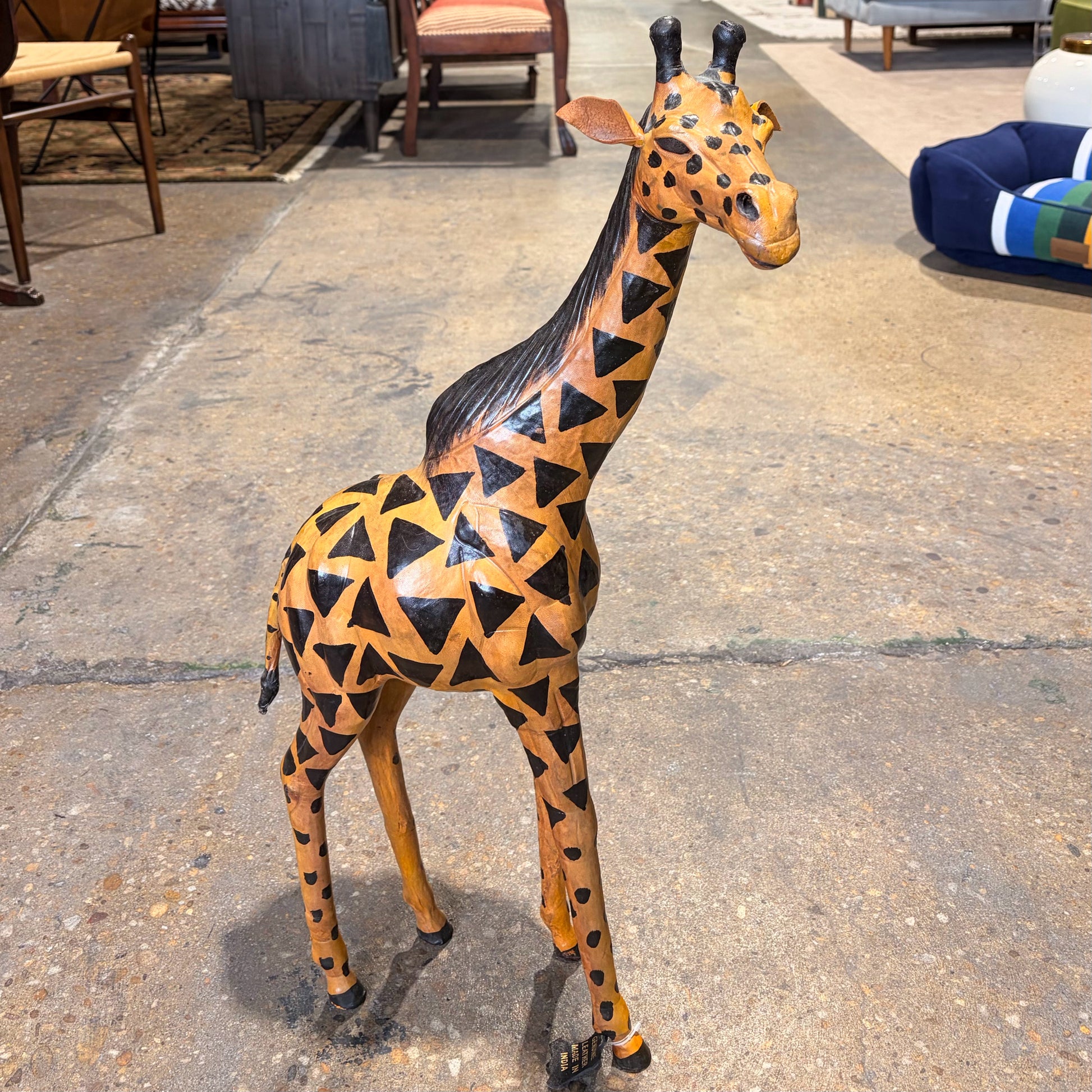 Tall Leather Giraffe Statue, 28.5"H 14" W x 6.5"D