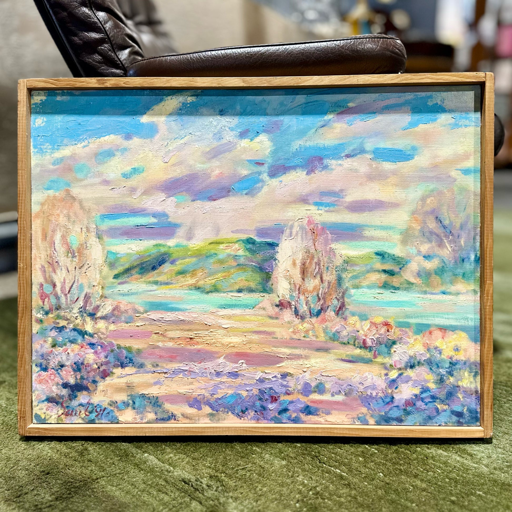 Vibrant Impressionist Style Landscape, Signed, 25" L x 1.5" W x 19" H