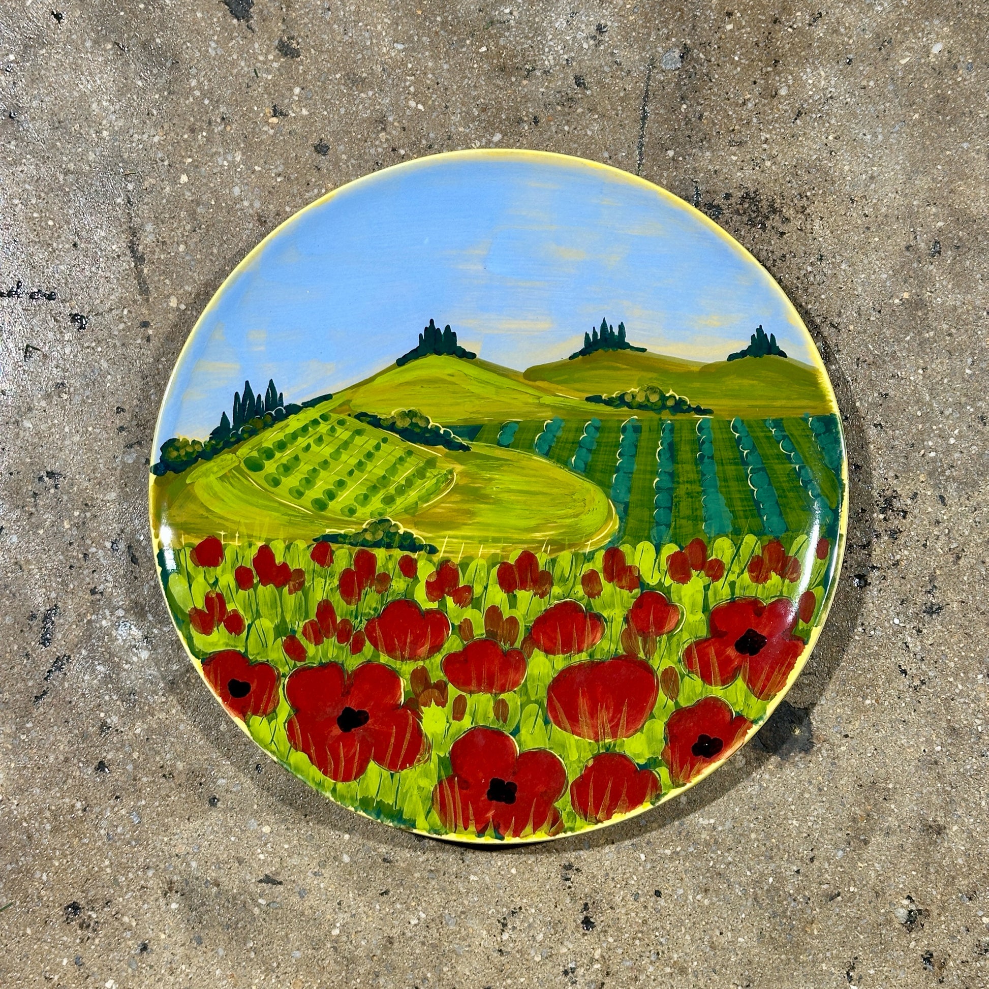 Vietri Ceramic Serving Plate, Hand Painted Field w/ Red Poppies, 16" Dia
