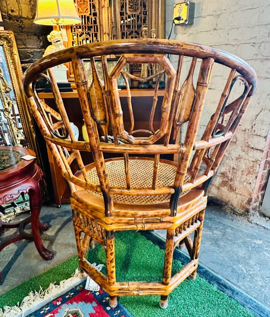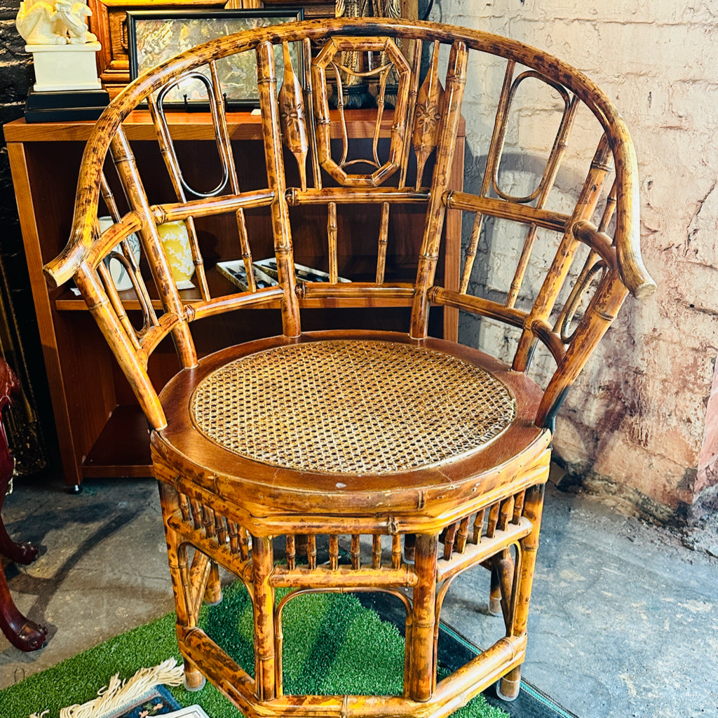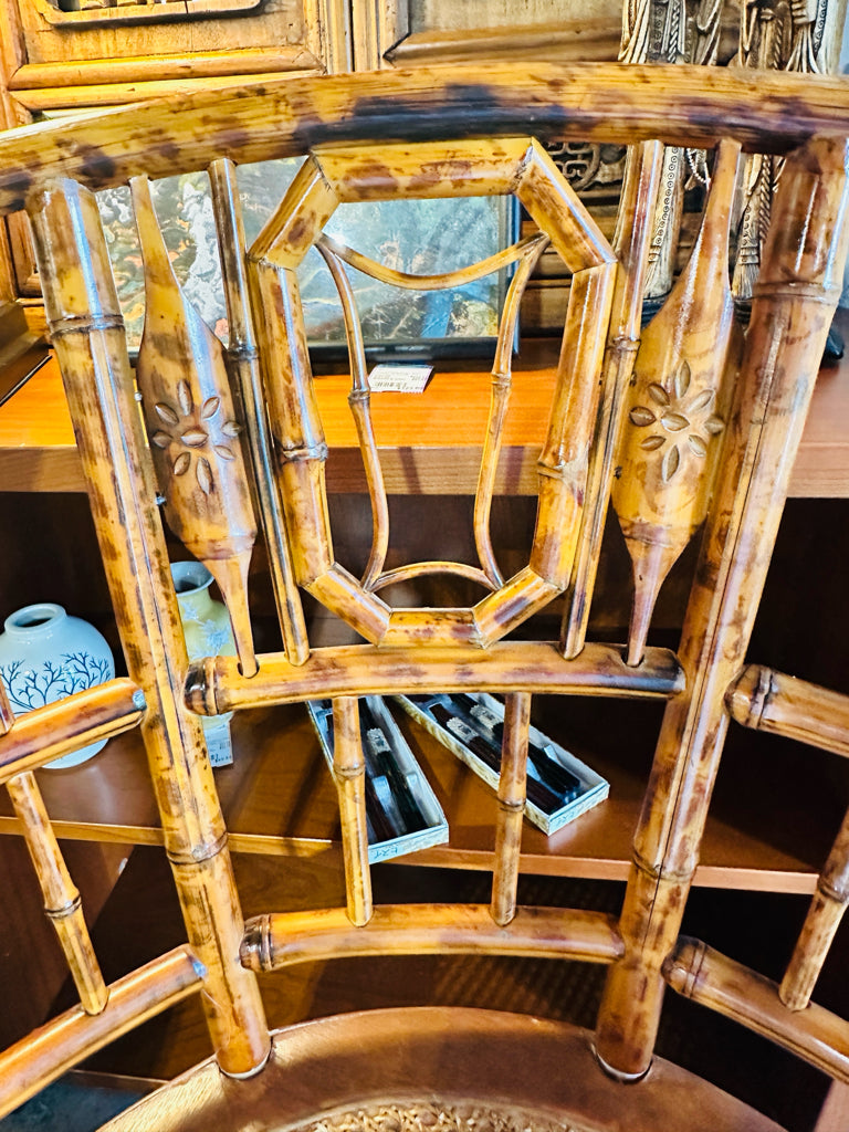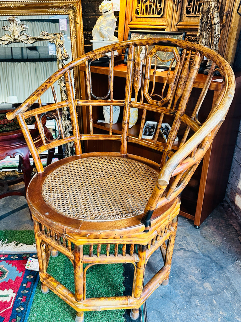 Vintage Brighton style tortoise bamboo/cane seat chair, 21.5"D x 27"W x 35.5"H