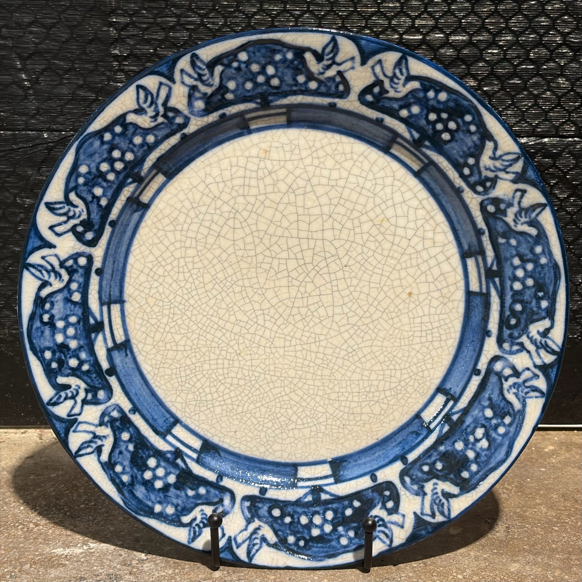 Vintage Dedham Pottery Bird in Orange Tree Plate, 10"Dia x 1"D