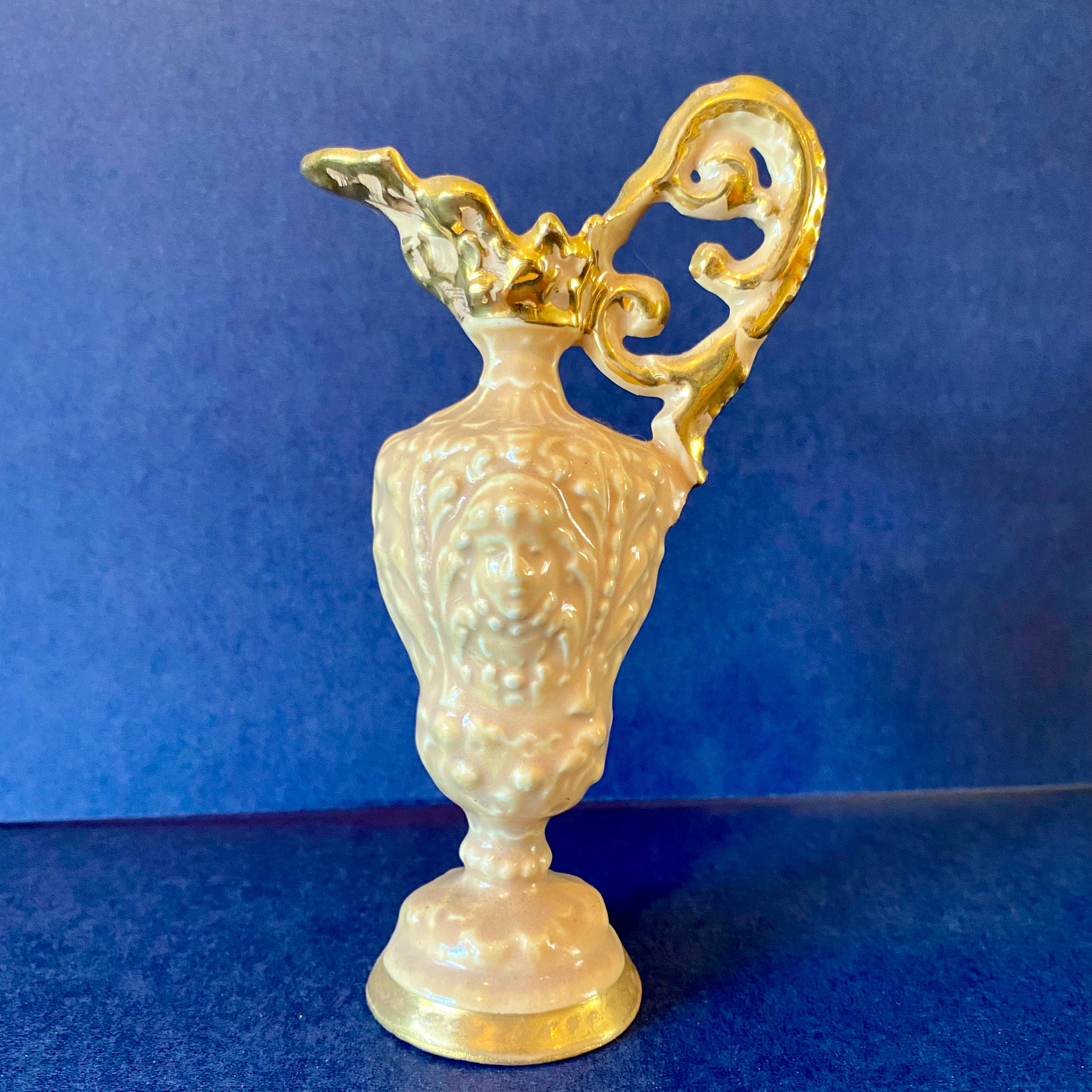 Vintage Goldra E. Palestine Ewer, Beige w/ Gold Trim, 5.5" H x 3" W x 2.25" D