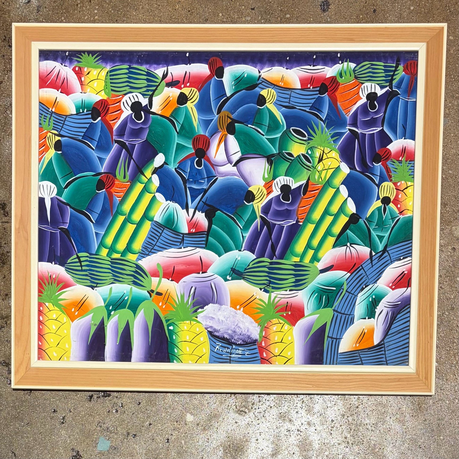 Vintage Haitian Folk Art, by Rodriguez, 27"W x 22.5"H x 1"D