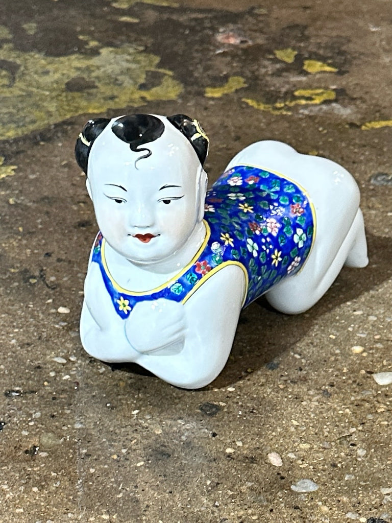 Vintage Japanese pillow, Famille Rose pattern, 9"W x 3.5"D x 6"H