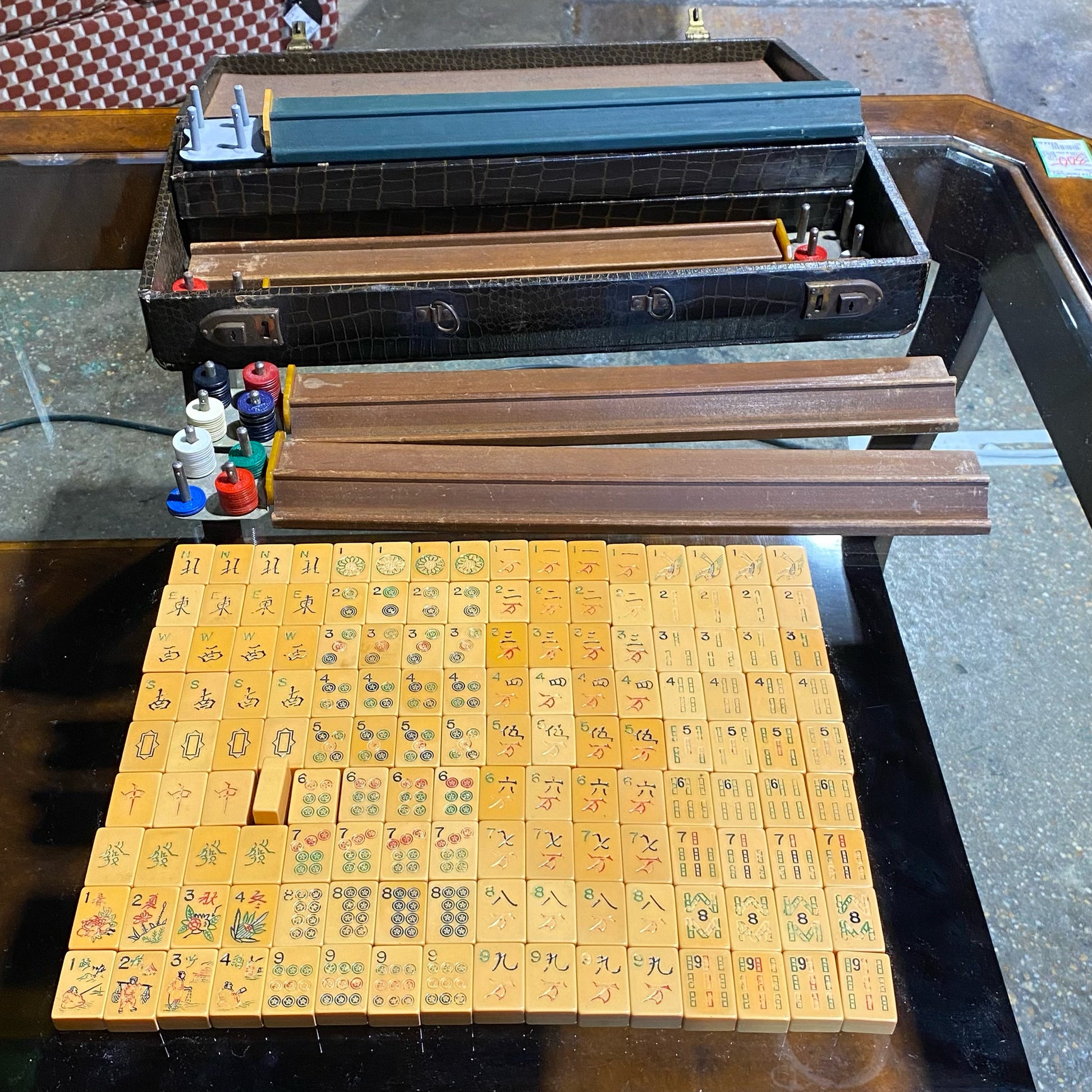 Vintage Mahjong Set W/Bakelite Tiles & Wood Racks, 19.5"W x 9"D x 3.5"H