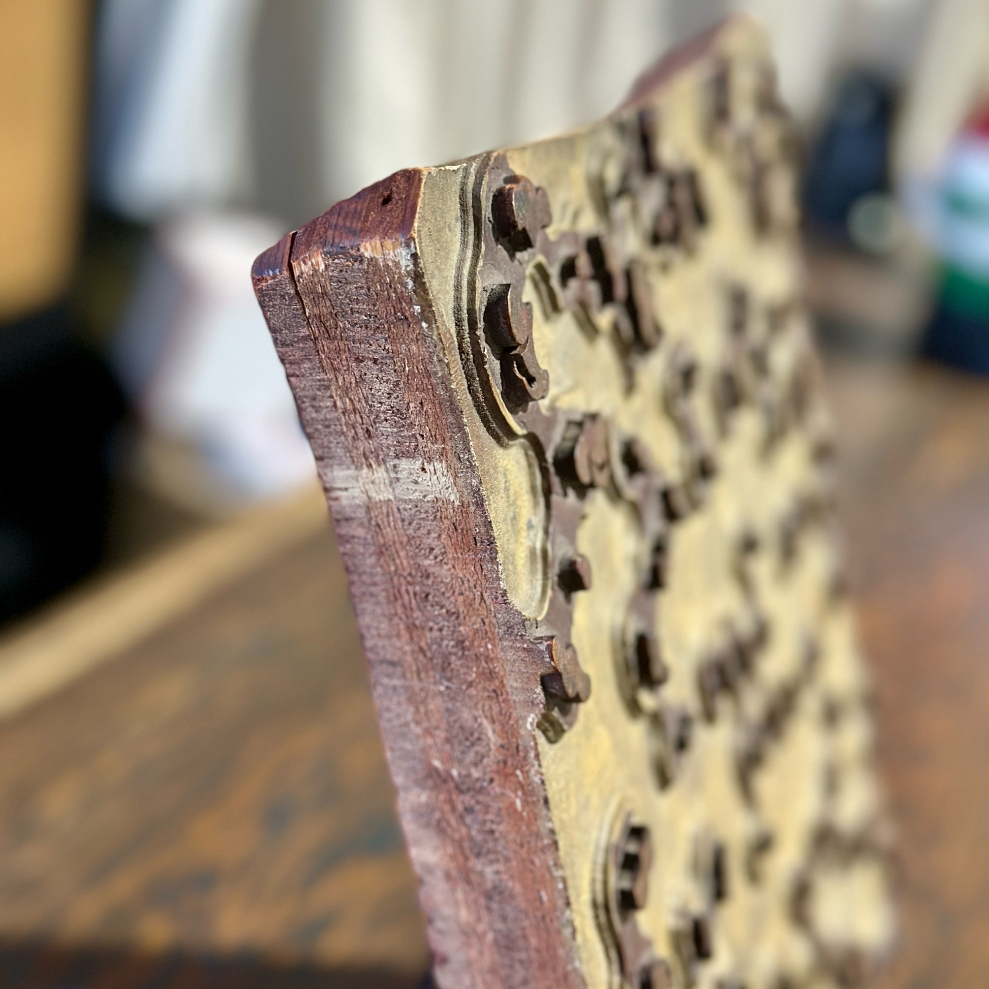 Vintage Wood Printing Block, Early French, 13.5" W x 13.5" L x 2" D