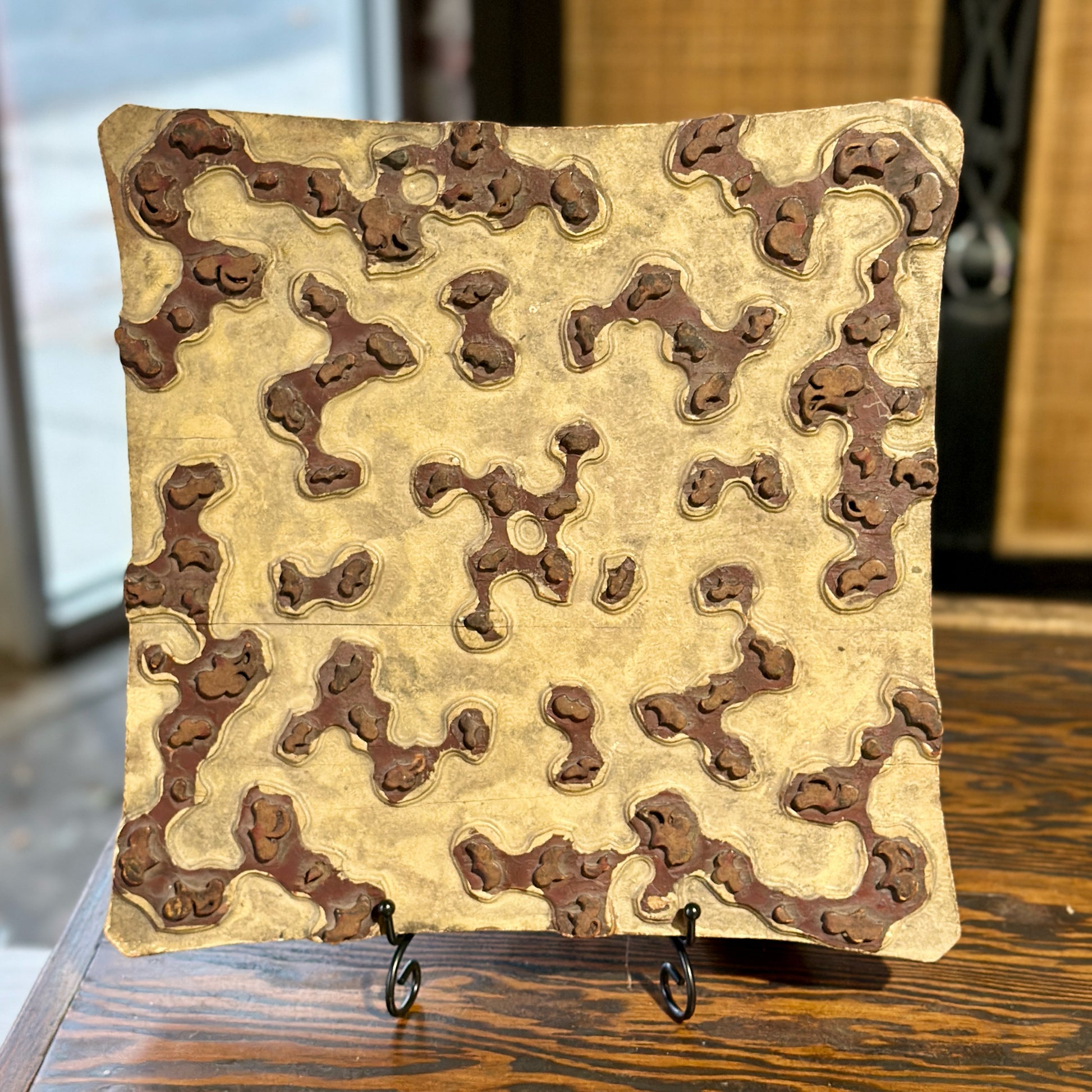 Vintage Wood Printing Block, Early French, 13.5" W x 13.5" L x 2" D, Used For Fabric & Wallpaper