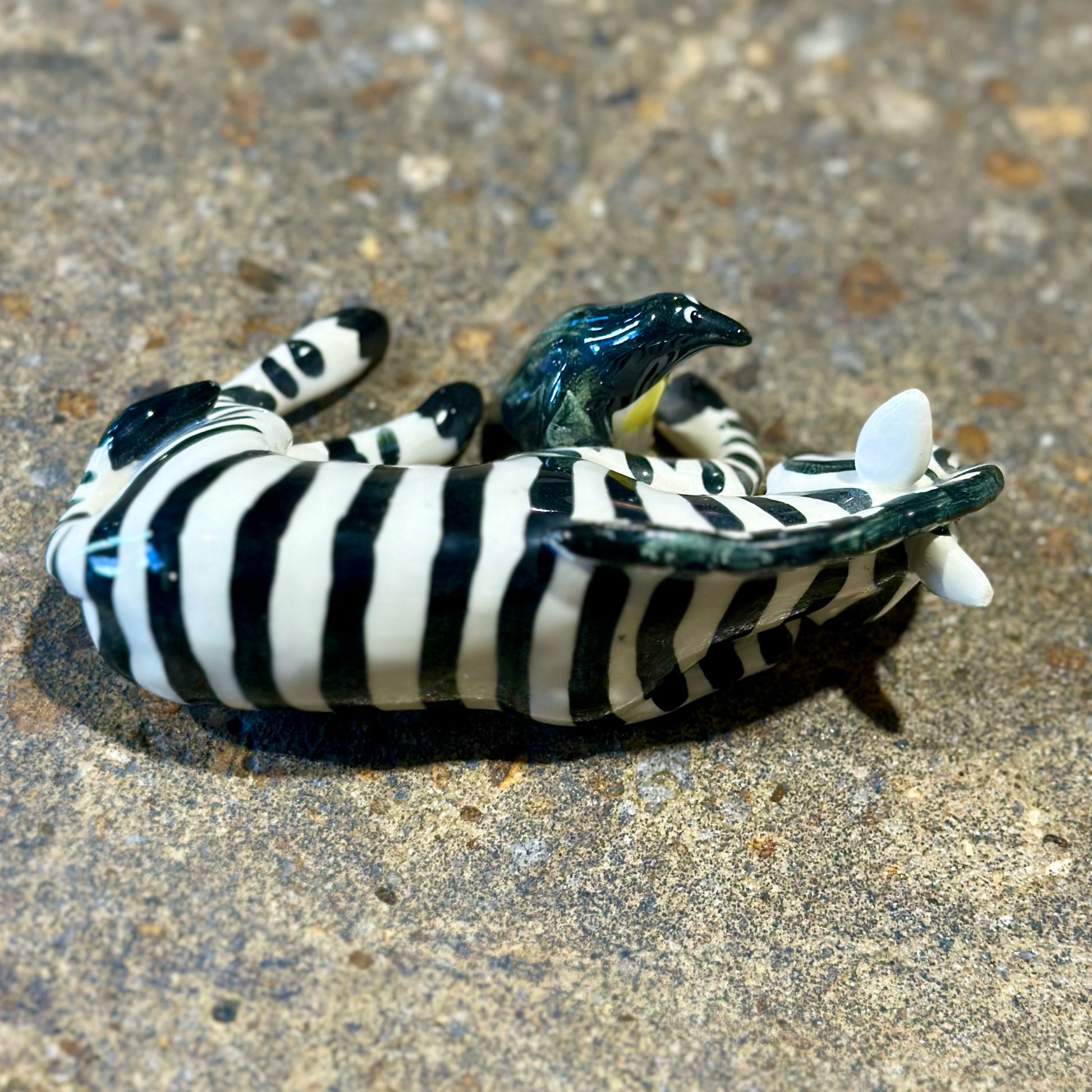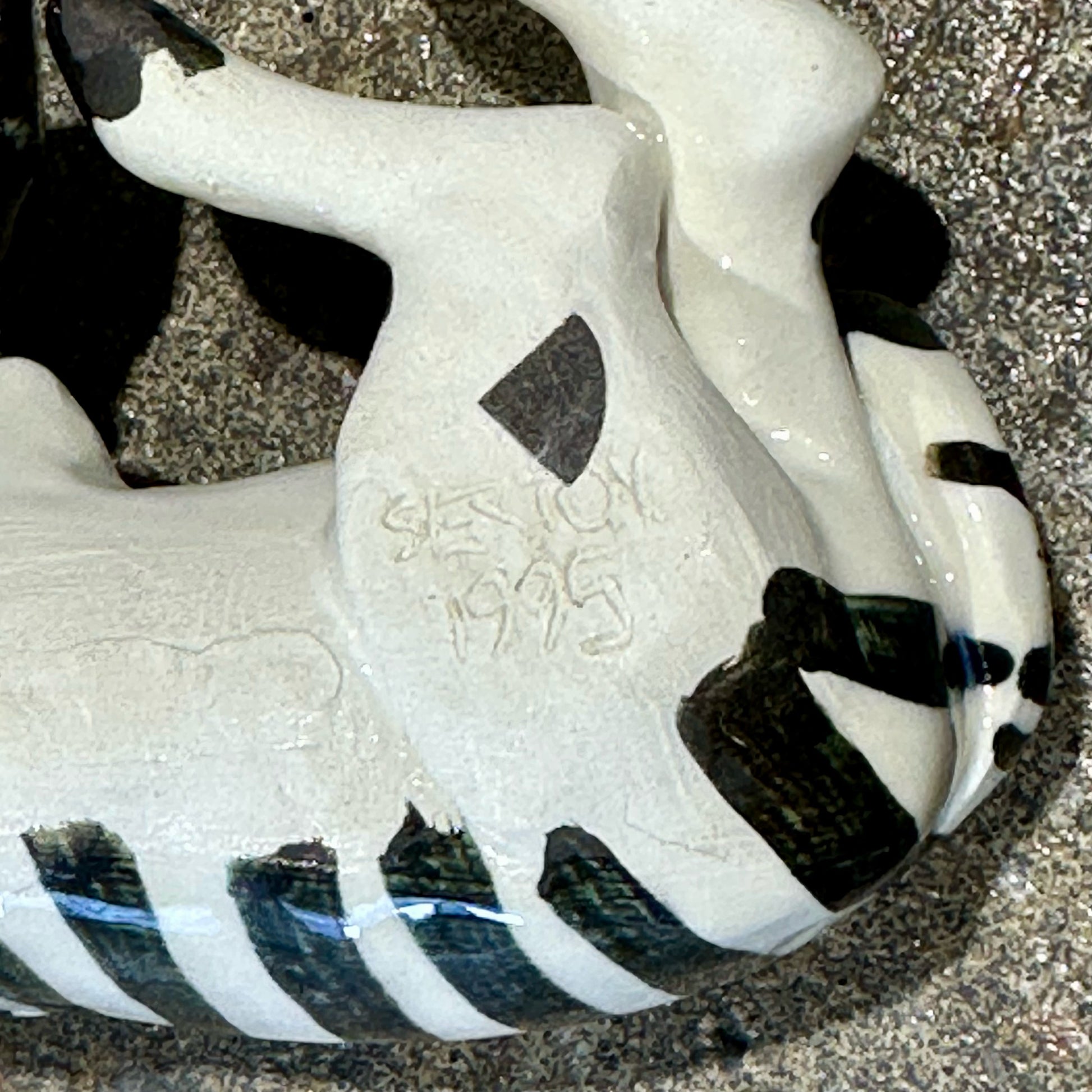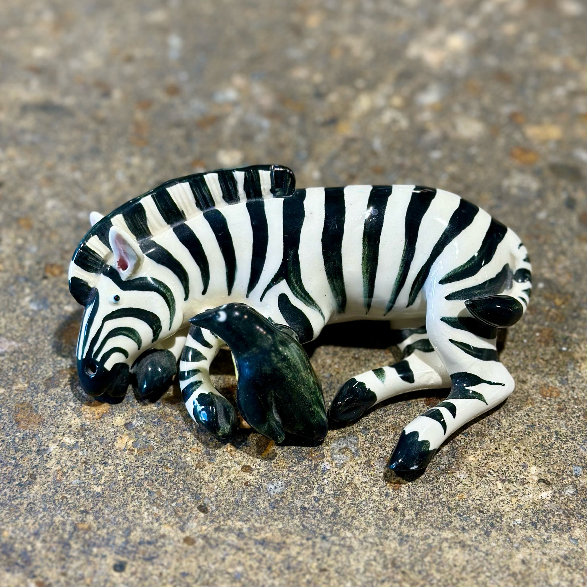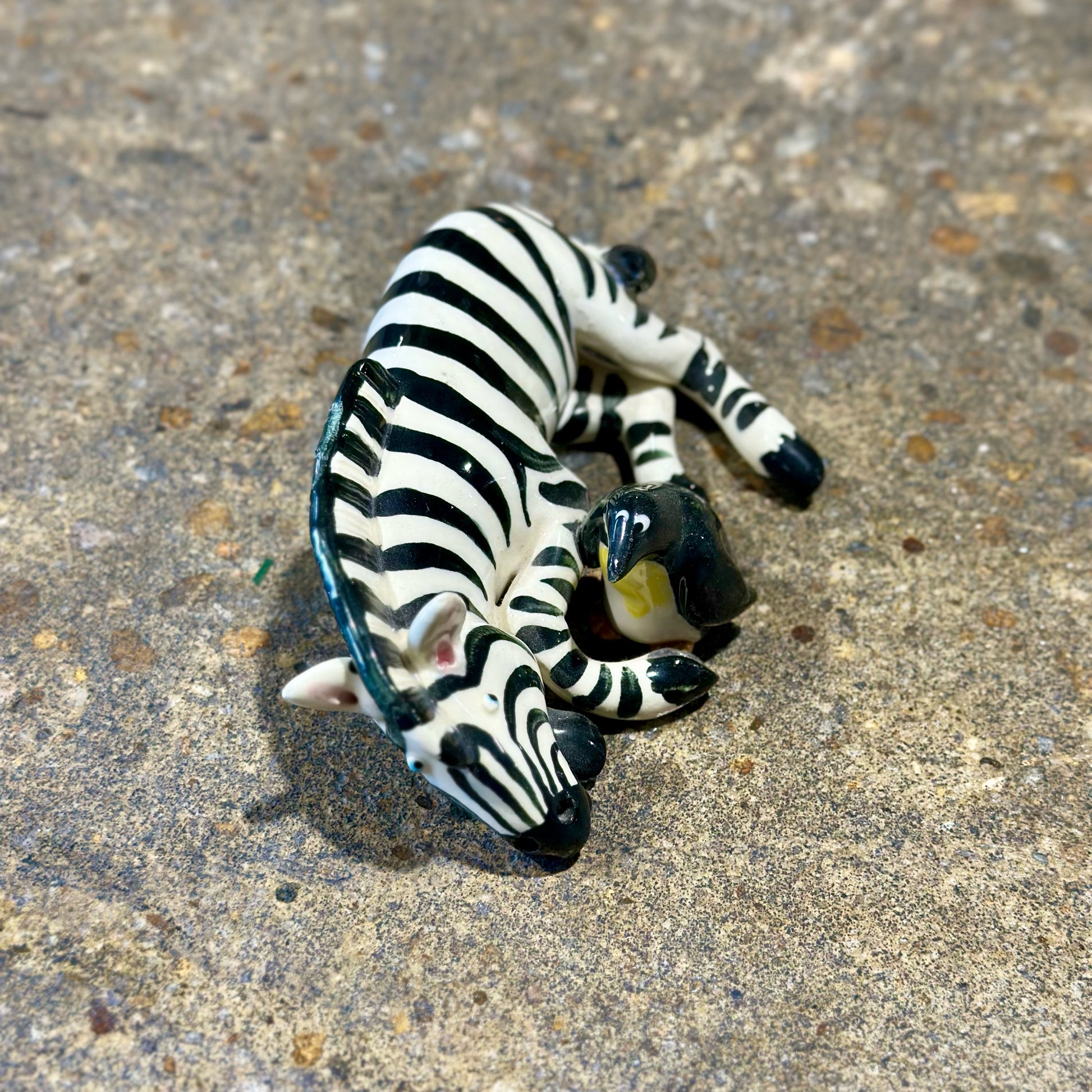 VTG Victoria Sexton Zebra & Penguin Figurine, Signed 1995, 5.5"L x 3.5"W x 2"H