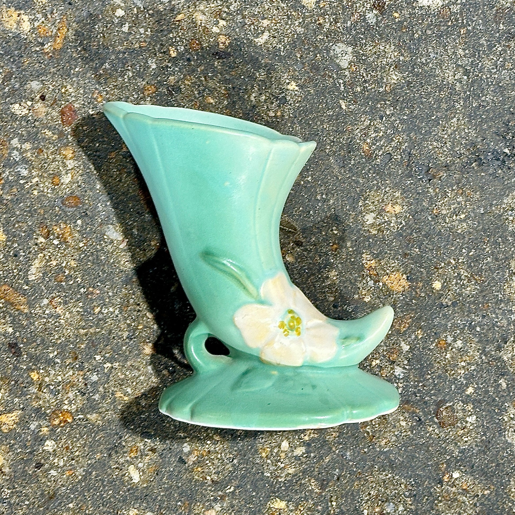 Weller Pottery Dogwood Horn Vase, Green, 5.5" L x 3.5 W x 6" H